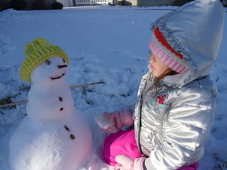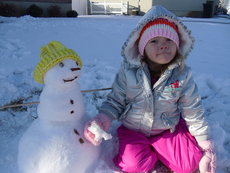 Vanessa and Owen wanted to build a snowman. The snow wasn’t packing very well so we built a baby snowman. Vanessa was very good at getting all of the supplies needed for the nose, eyes, mouth and arms. She also wanted to put a hat on it. She told me while building the snowman that we needed a hat so it could come alive just like Frosty. When we finished and she put the hat on it, she sat in front of it waiting for it to move. I had to explain that snowmen don’t actually come alive. She was very disappointed and sad. If I could have made it come alive, I sure would have.