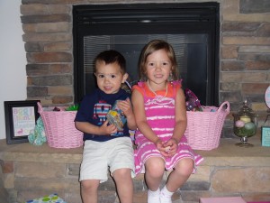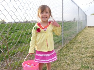 We did the majority of our celebrating on Saturday. We decided that at our house the Easter Bunny comes on Saturday so it leaves Sunday open to celebrating the real meaning of Easter, which is the Resurrection of our Savior, Jesus Christ. Before we put the kids to bed, our scripture story was about Christ’s resurrection. Before we started to read, I asked Vanessa what Jesus did for us. She promptly replied, “He died for us because he loves us!” That was a proud parent moment! She said it perfectly! It was a great start to the spiritual day that was to come!