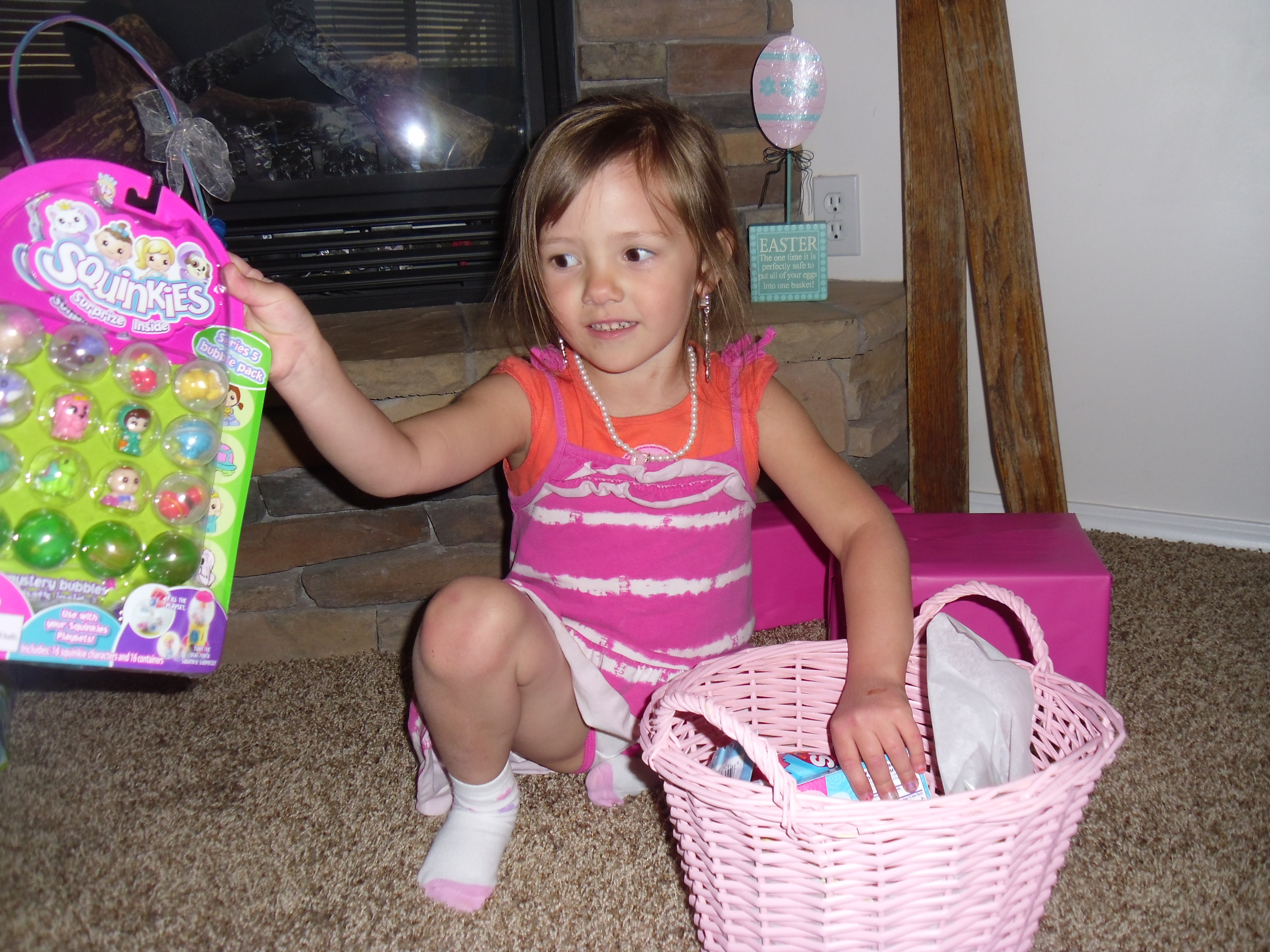 The Easter Bunny came and gave the kids some gifts. Owen got a basket filled with candy, legos, a ball, bath paint, and a new Easter Sunday outfit with three new ties. Vanessa got a basket full of candy, Squinkies, bath paint, and a Easter skirt and bow. Sariah got a book, some head bands, and a matching skirt and bow. What a fun day it was to be able to spend with my family!