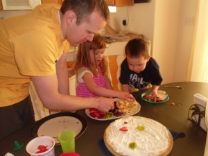 We love to do things together as a family! To celebrate Spring we decided to make a fruit pizza together. The kiddos loved helping and especially eating the fruit as they helped. They were a bit nervous about eating kiwi but as soon as we persuaded them to taste it, they gobbled them up! It turned out so yummy and got us even more excited for Summer!