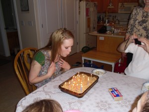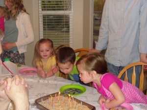 In March, we also got to help Aunt Arianne celebrate her 21st birthday! We were able to go over to the Sorensen’s house and have dinner and watched (the kids helped her out) her open presents. For her birthday dessert, she actually requested a brownie frosted in cookie dough. If you love cookie dough, this is to die for! It was delicious! The kids always have to have their turn with blowing out the candles.  It is so fun watching them. They get so excited over the simplest things! We had a lot of fun spending the day with the family. Happy Birthday Aunt Arianne!