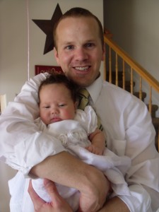 After making sure we had everything in order, we headed off to attend our meetings. We had lots of family come and support us. It was so neat to see all the priesthood holders surround our little girl to give her a name and a blessing! Mark gave the most beautiful blessing. From the moment she was born, we knew that she has a very strong, sweet and gentle spirit and that she will do much good in this world. His blessing was perfect for her. He blessed her that she would be strong in the gospel and sensitive to the Spirit. He also blessed her that when she is old enough she will find a worthy young man to take her to the temple to be married and make essential covenants with our Heavenly Father. We learned after the blessing that when Mark had said this, she had smiled a big smile. She definitely knows what she needs to do to be able to return Home. I am so happy to have a husband who honors the Priesthood and is worth to give our children blessings. It truly has been a great blessing and I love him dearly for it!