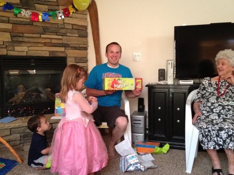 We gave Mark two more Wii nunchucks to complete the sets, the Tin Tin Wii game, flip flops, and a photo book of our trip to Hawaii. Mark’s parents gave him two white lawn chairs which we definitely needed! My parents gave him some new church shoes. The Thomson Family gave him some Manzana Soda Pop which he was excited about and Kimberly gave him some Avenger cups. We sure had a fun time celebrating his birthday! We love having him apart of our lives! Happy Birthday Mark!!