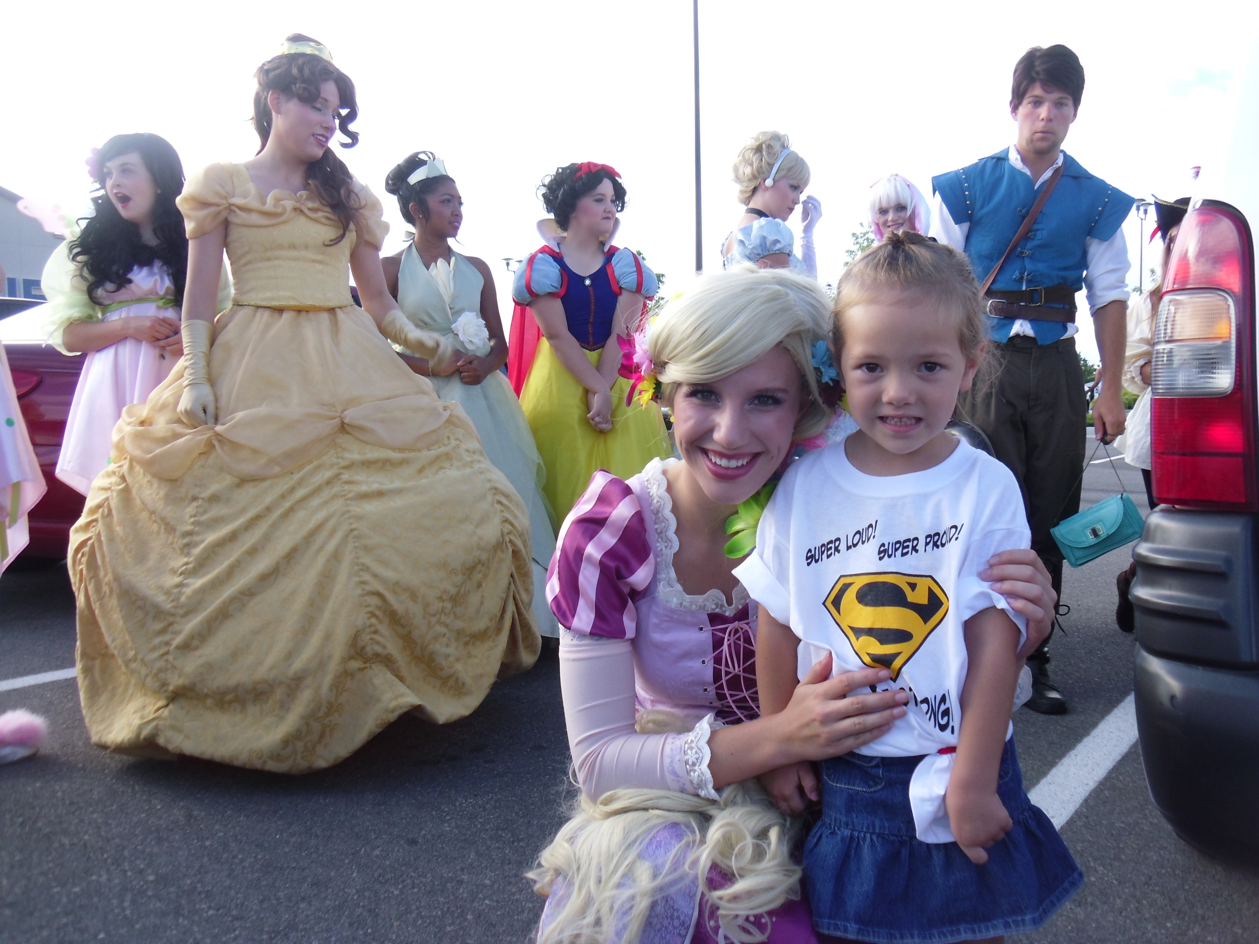 Vanessa was able to do a Mini Cheer clinic for a few days. She had a lot of fun learning the cheer and showing me the actions. She was able to ride in the Clinton City Parade and do her cheers that she learned. She was really excited to be able to do that. Before dropping her off, we were able to get some pictures with the Disney Princesses that were walking in the parade! She was so excited to see them!