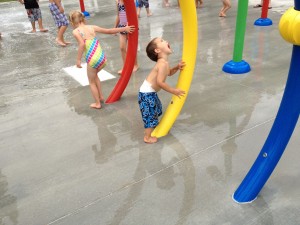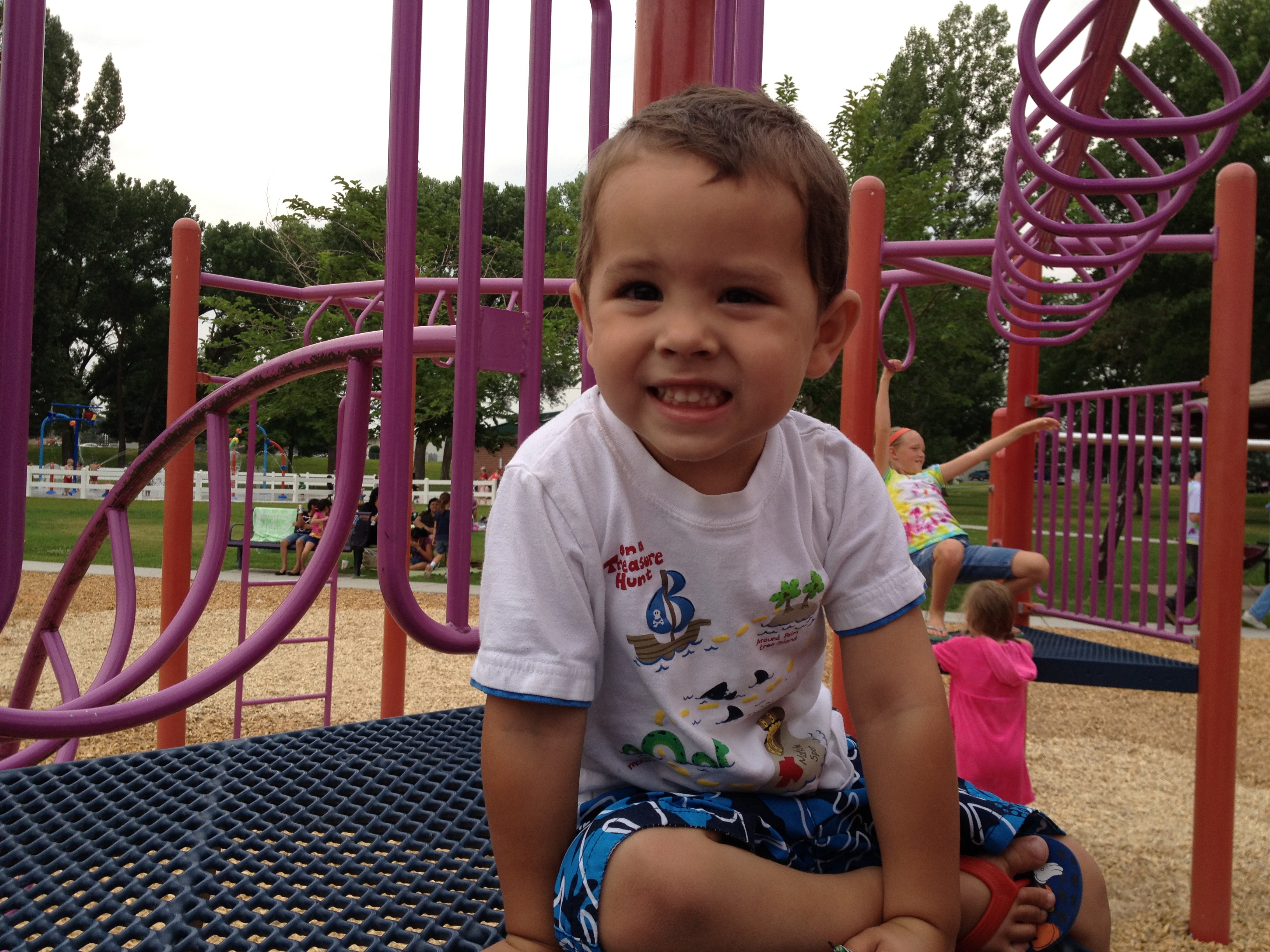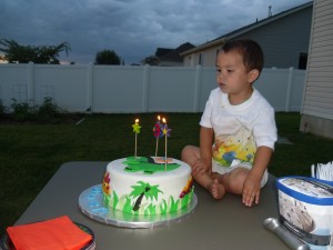 We got to celebrate Owen’s birthday twice. On Friday, his real birthday, I took the kids to the splash pad to play and have a picnic. Owen had fun playing on the slides and splashing in the water. He loved it. We got home and I was able to finish making his cake. He LOVED it! HE couldn’t stop talking about it and touching it! It was sure fun to watch him.