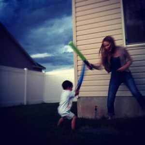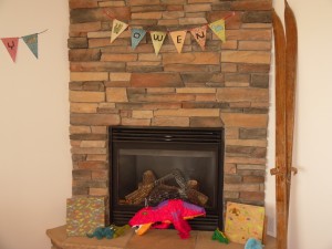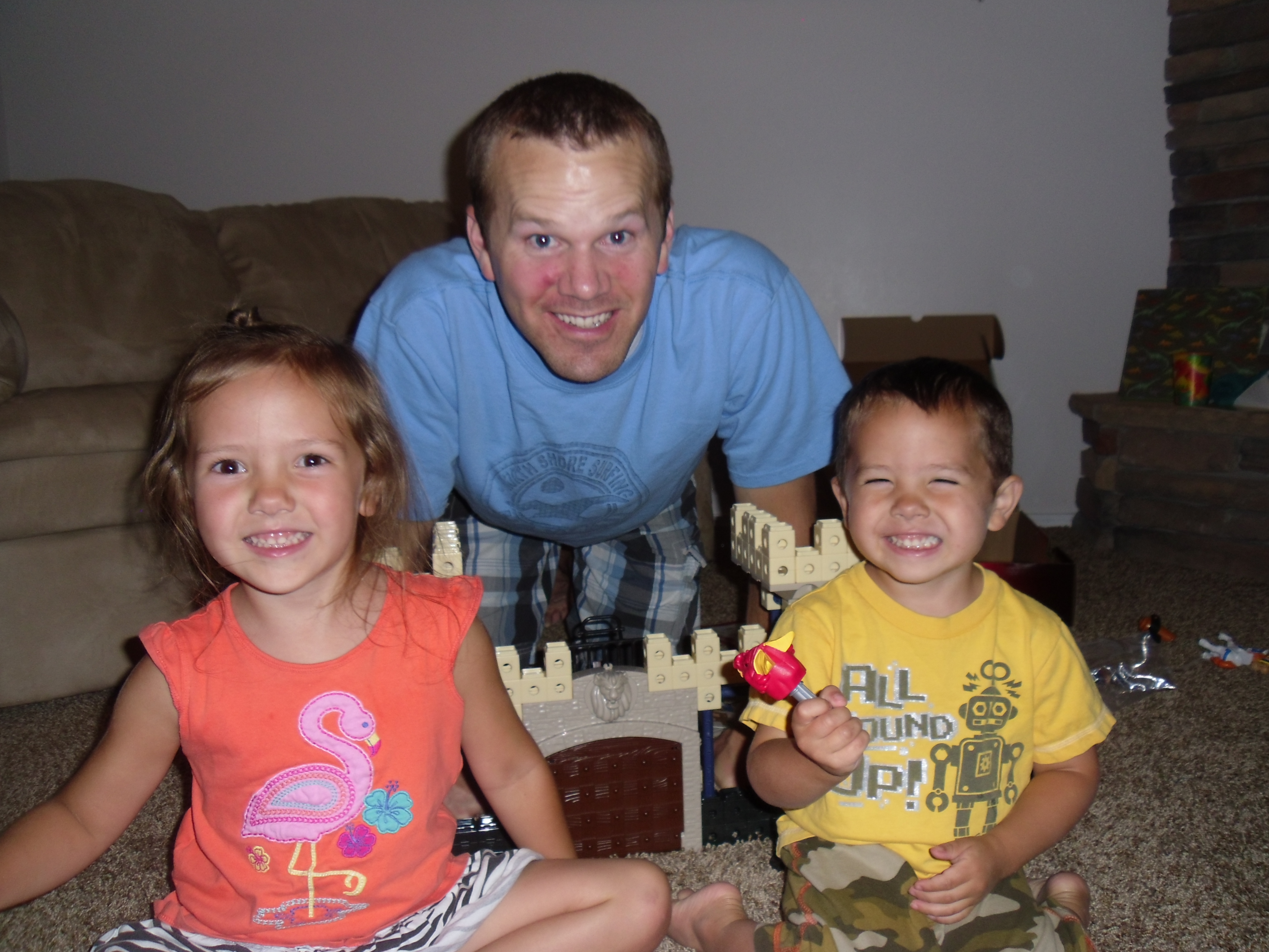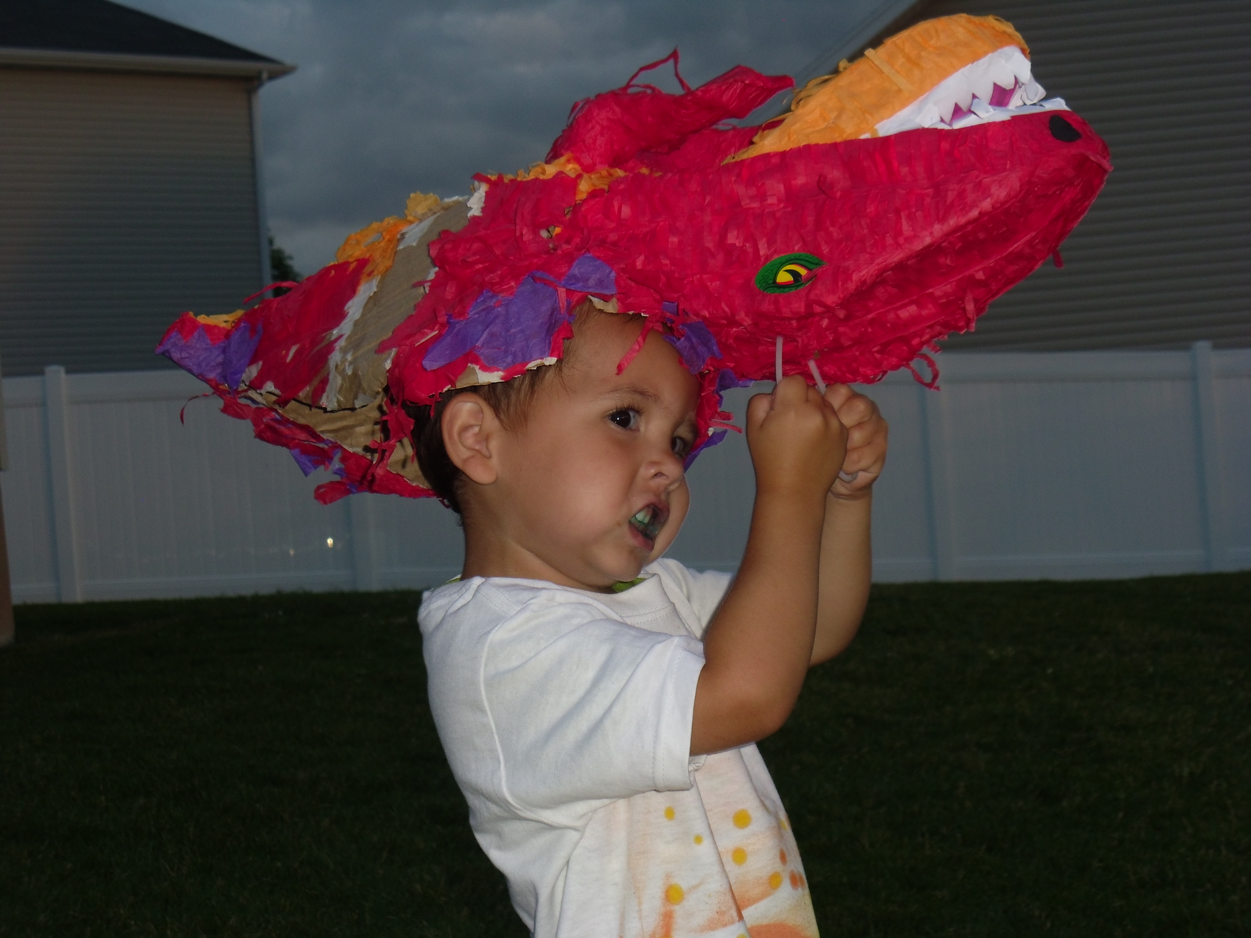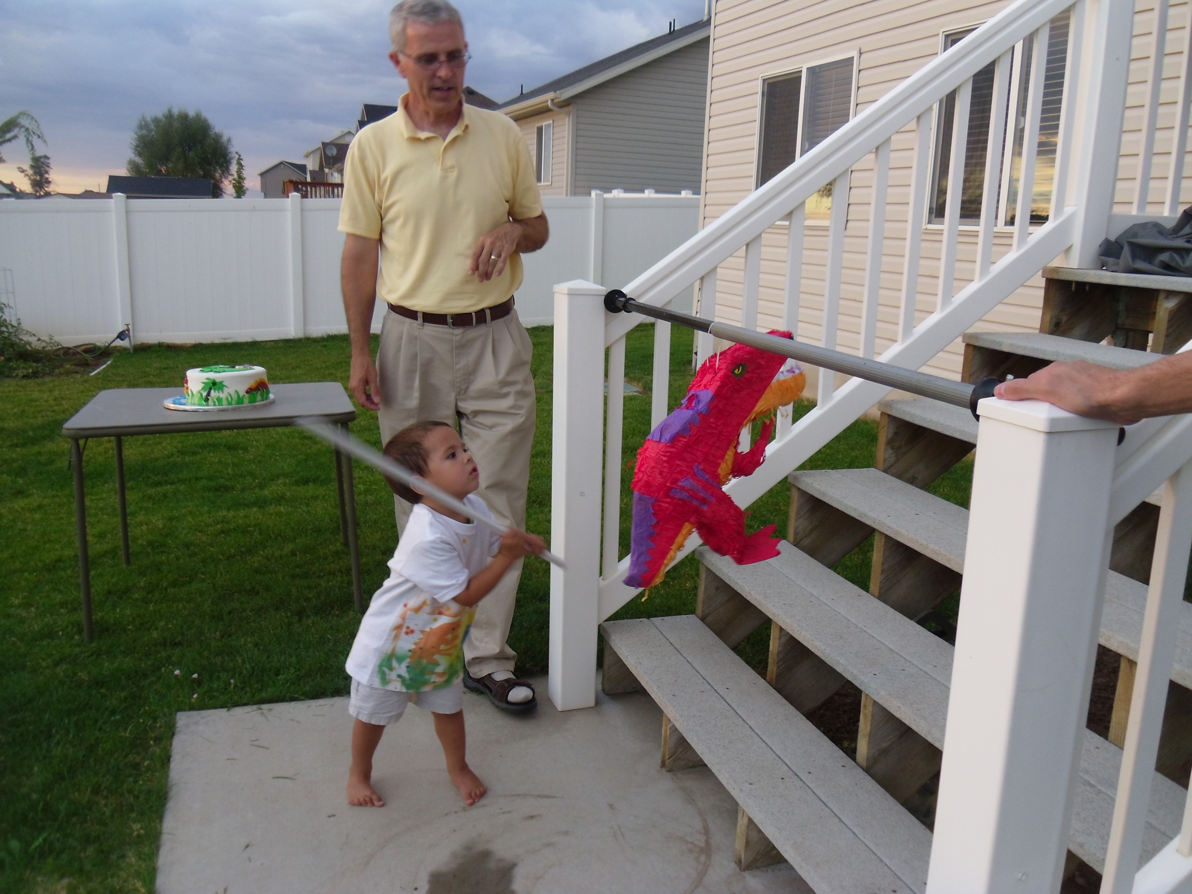 After presents, we went outside and the kids got to hit a pinata. It was too hard for them to break but they still had a fun time hitting it. We then were able to bring out the Dino cake and finally light the candles. Owen was so excited to blow the candles out that started singing to himself. We all had to quickly join in to help him finish the song! That night was also our city’s heritage days so they shot off fireworks. We have a great view from our backyard. It was a great way to end the day!