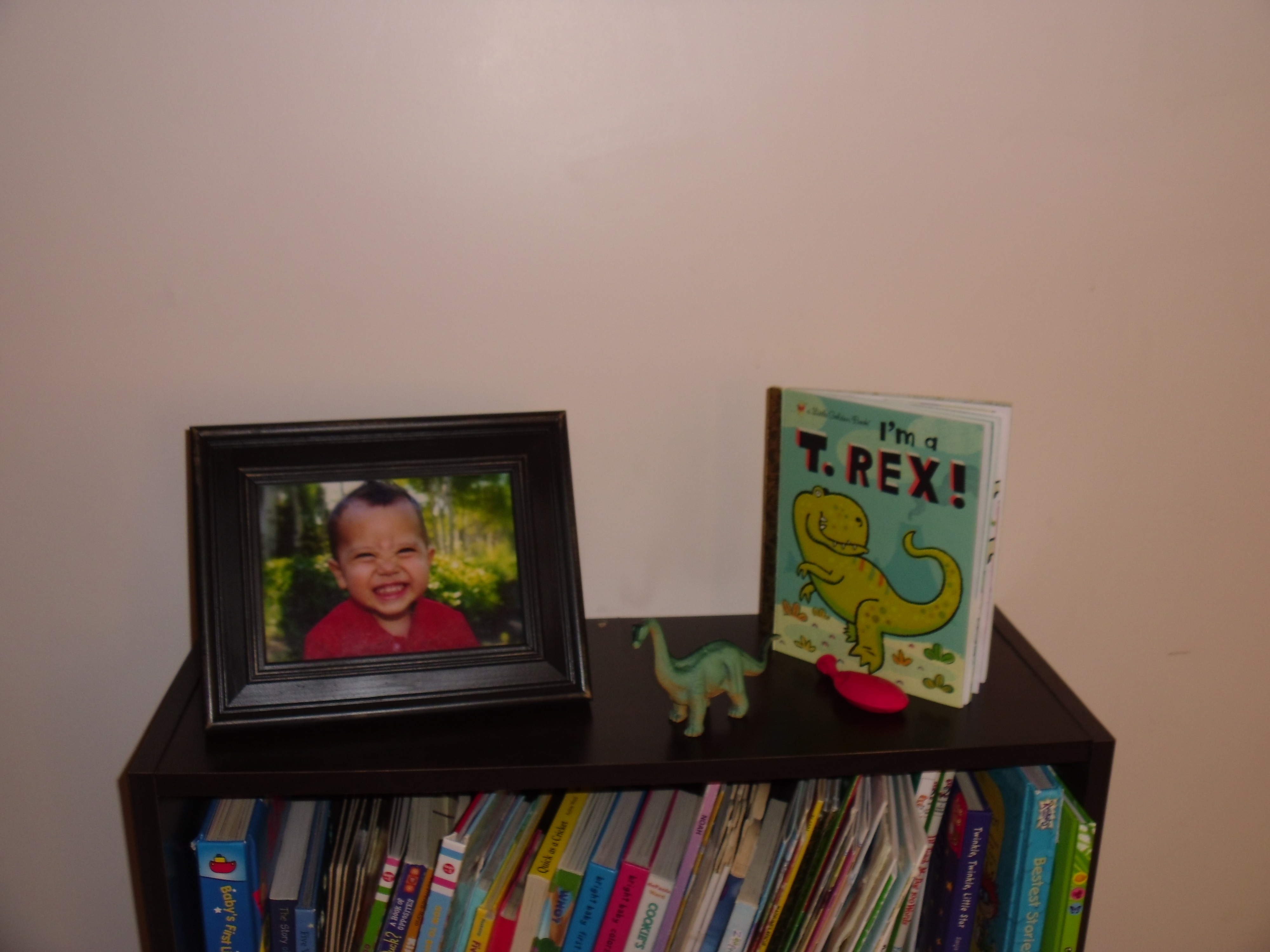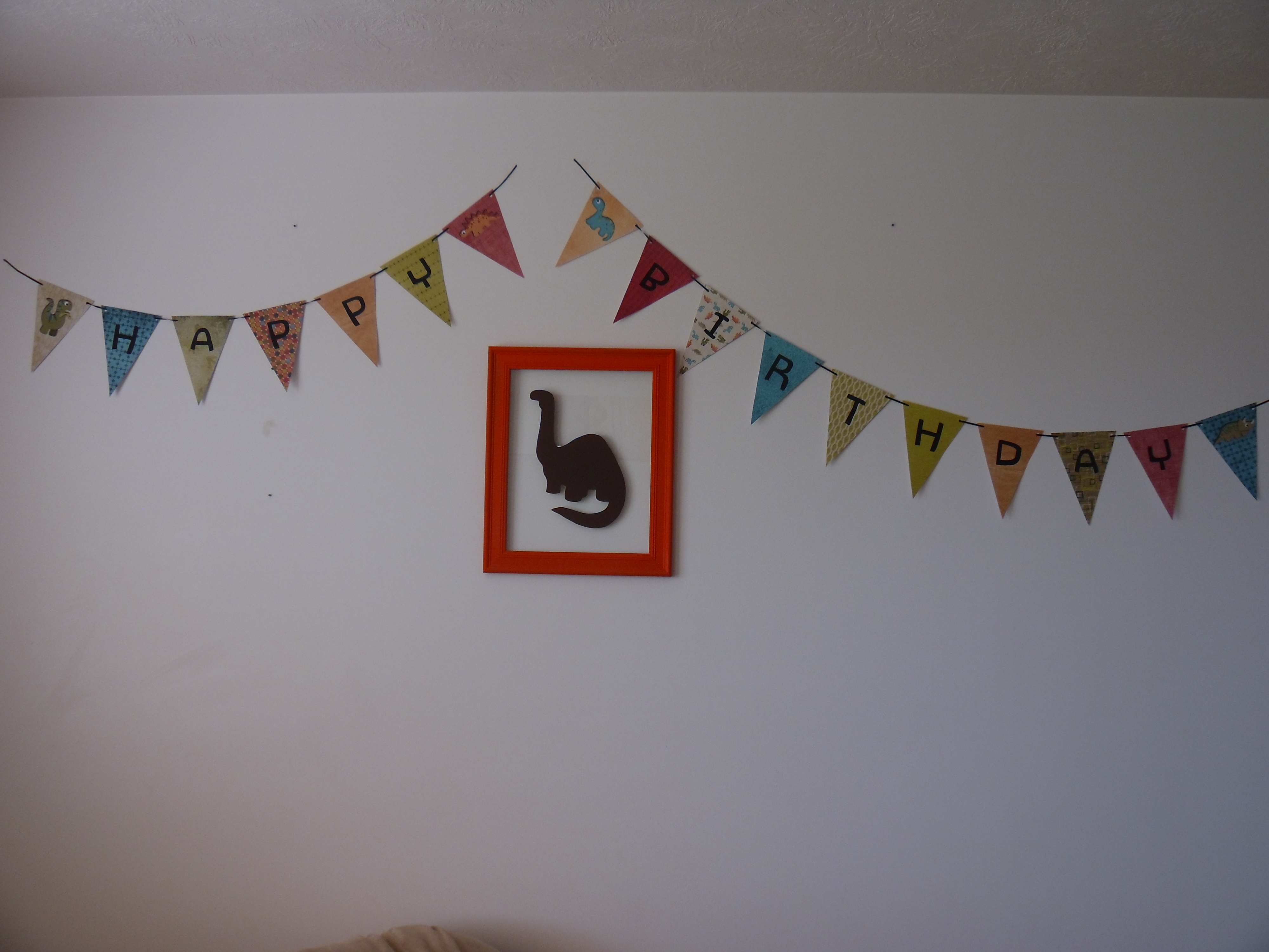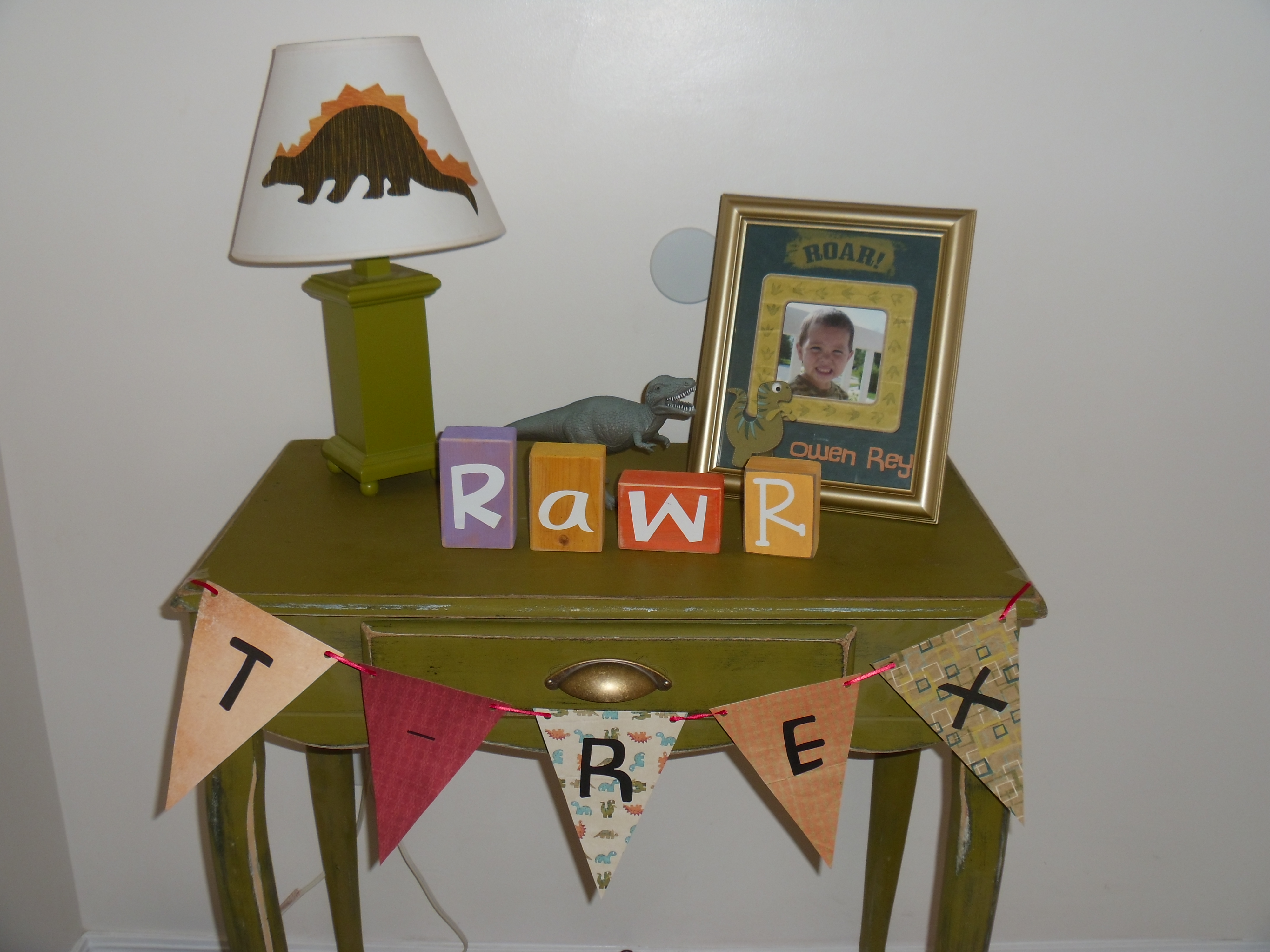 This year Owen wanted a Dinosaur Birthday Party with a T-Rex cake. He was so excited this year. He had so much fun telling people that it was his birthday and that he was now 3! I started working on some of the decorations a few weeks before his birthday. I was able to make a fun Dino banner, his invites, and I decorated the house using his bedroom decor and all of his dinosaur toys! The morning of his birthday he woke up and was so excited to his the house decorated just for him. What a little cutie!