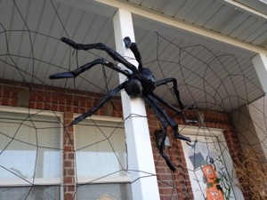 To put the finishing touches on it, I made a giant spider using some black trash bags and newspaper. It took me bit longer than expected but it was worth it. It looks so cool with a giant spider right in the middle!