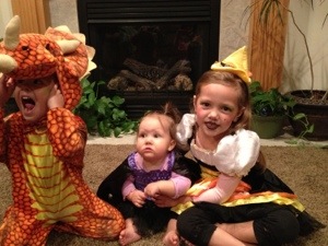Wow has this year flown by! Another Halloween has come and gone! I felt like I wasn’t as prepared for this one. At least I got their costumes! Vanessa was a Candy Corn Witch, Owen, a Triceratops, and Sariah, a Bat. They looked so cute!