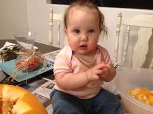 On Tuesday, we were able to paint and carve pumpkins. Vanessa carved a Sleeping Beauty crown and Owen painted a very green pumpkin. Sariah enjoyed trying to eat the insides of the pumpkins! What a silly girl. We had a lot of fun doing this together as a family. One of the best activities for Halloween.
