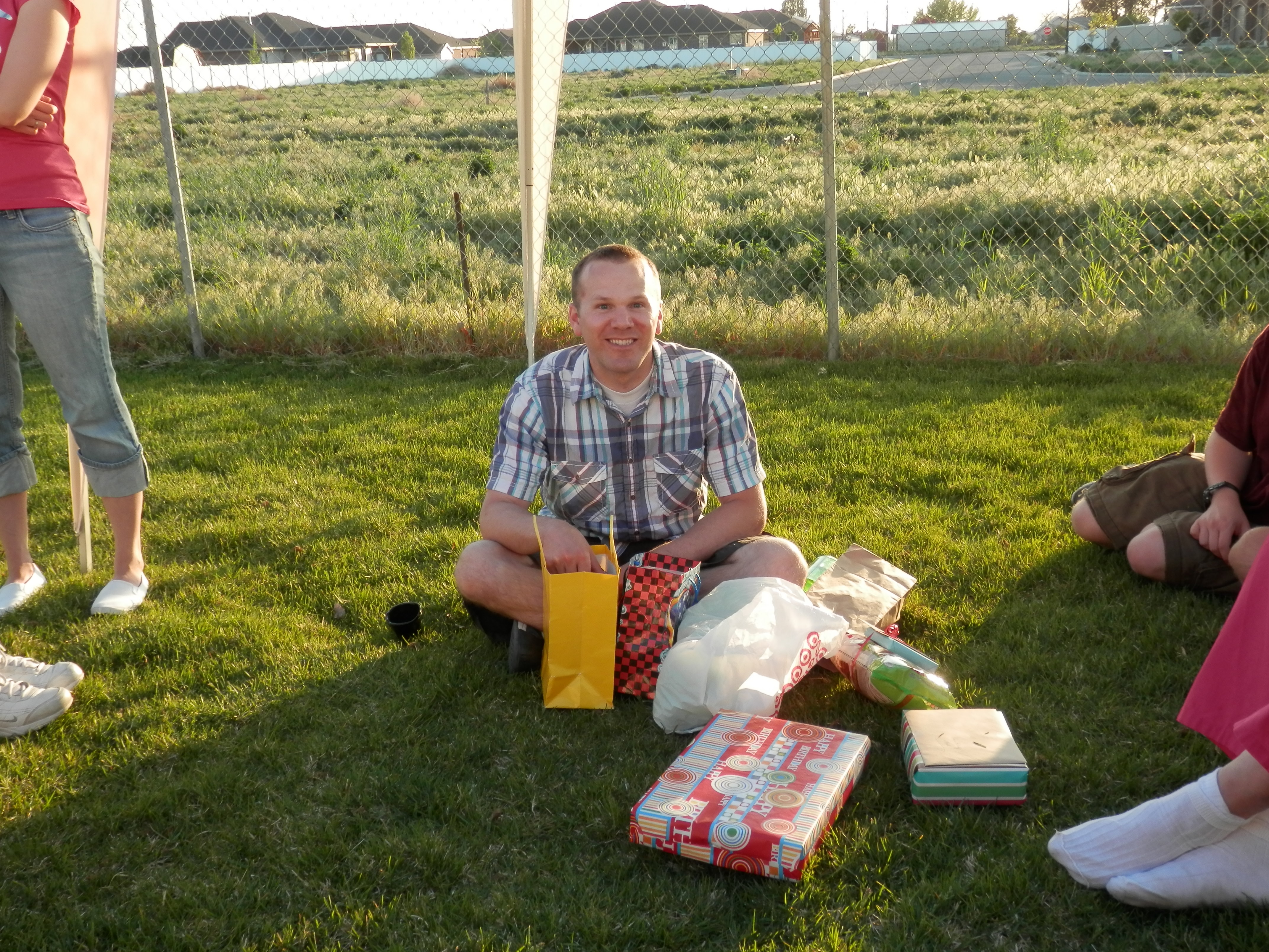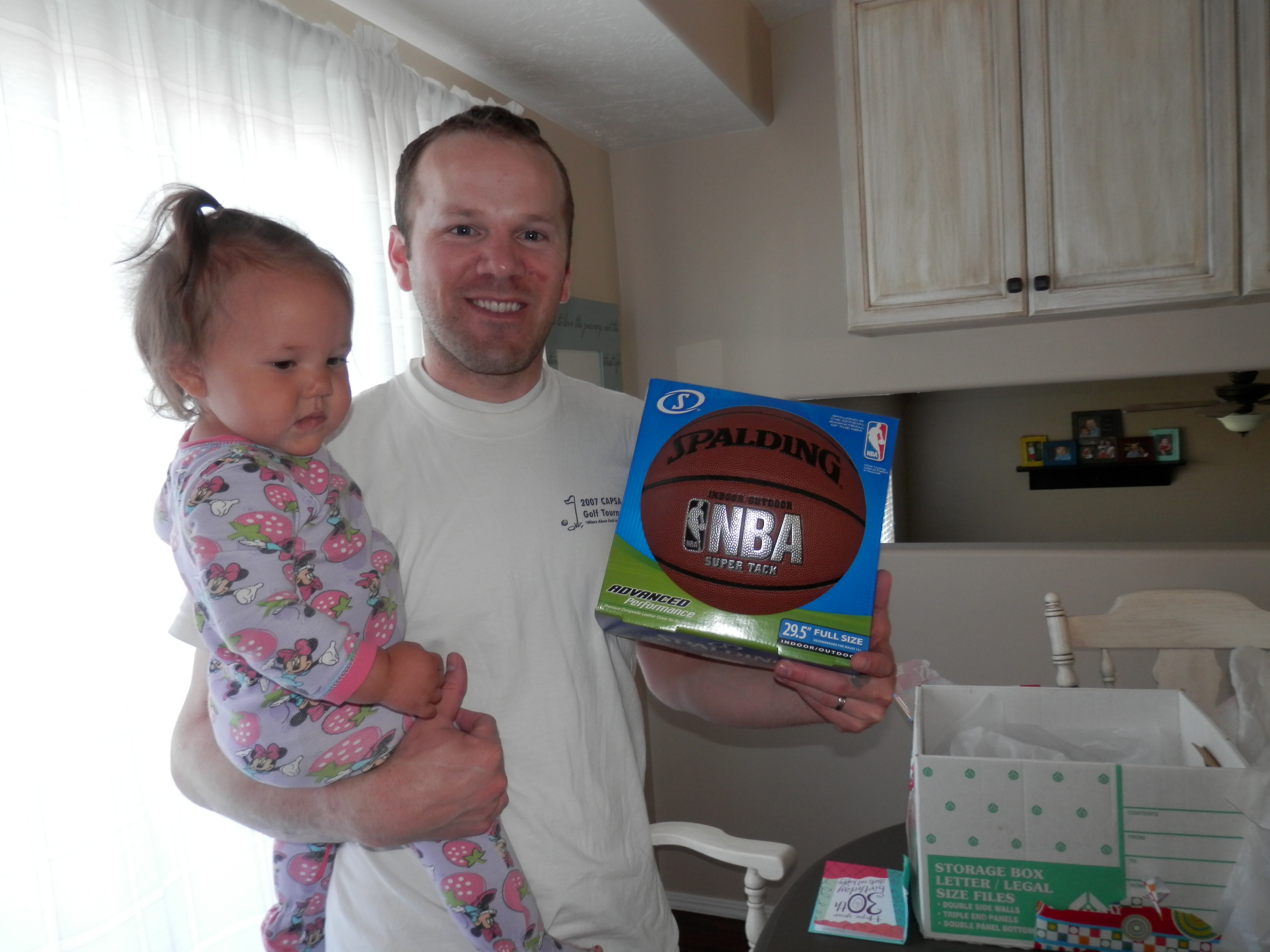 For his birthday surprise, we got him a basketball hoop. Mark has been saying he wanted one for quite sometime and I knew that it would be the perfect gift. It was also convenient that I found one on sale! That is never a bad thing at the Sorensen house. I was so excited to buy it because I have been putting money away for just that reason. I had it shipped to our house and had our sweet neighbors store it in their garage until his birthday. David also was kind enough to set it up and put it in our driveway Saturday morning. When Mark woke up, the kids were so excited to give him his presents. One of the gifts was a basket ball with a note inside stating the other part was outside. He was pretty darn happy when he saw it, which made my heart happy too! He has been outside every night shooting hoops! I’d say its getting some use!