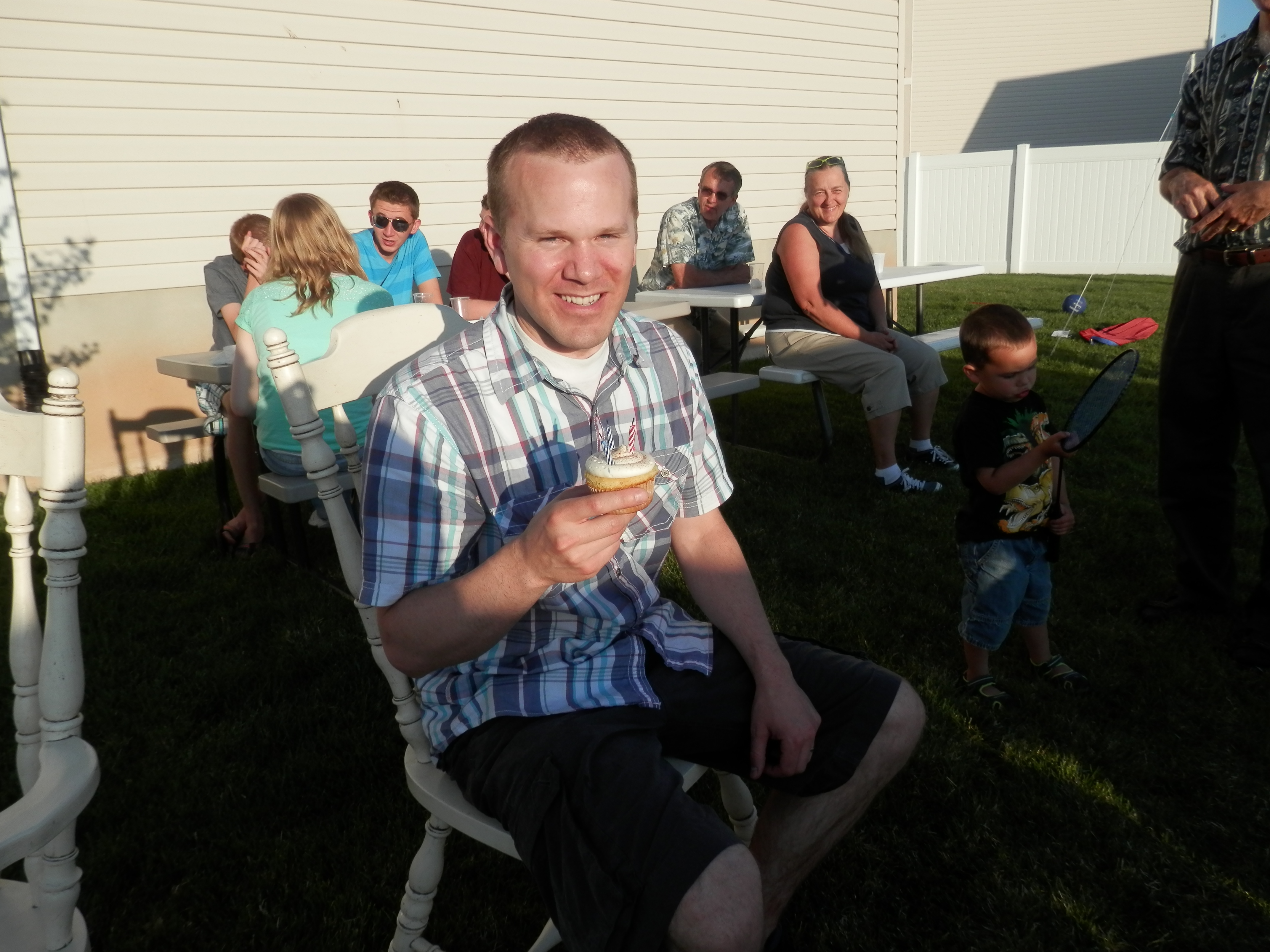 I planned a big birthday party BBQ with family and friends. It turned out to be a beautiful sunny day. While I was getting the cupcakes finished and things set up, Mark was able to meet some family and friends to play some laser tag. They sure had a lot of fun!