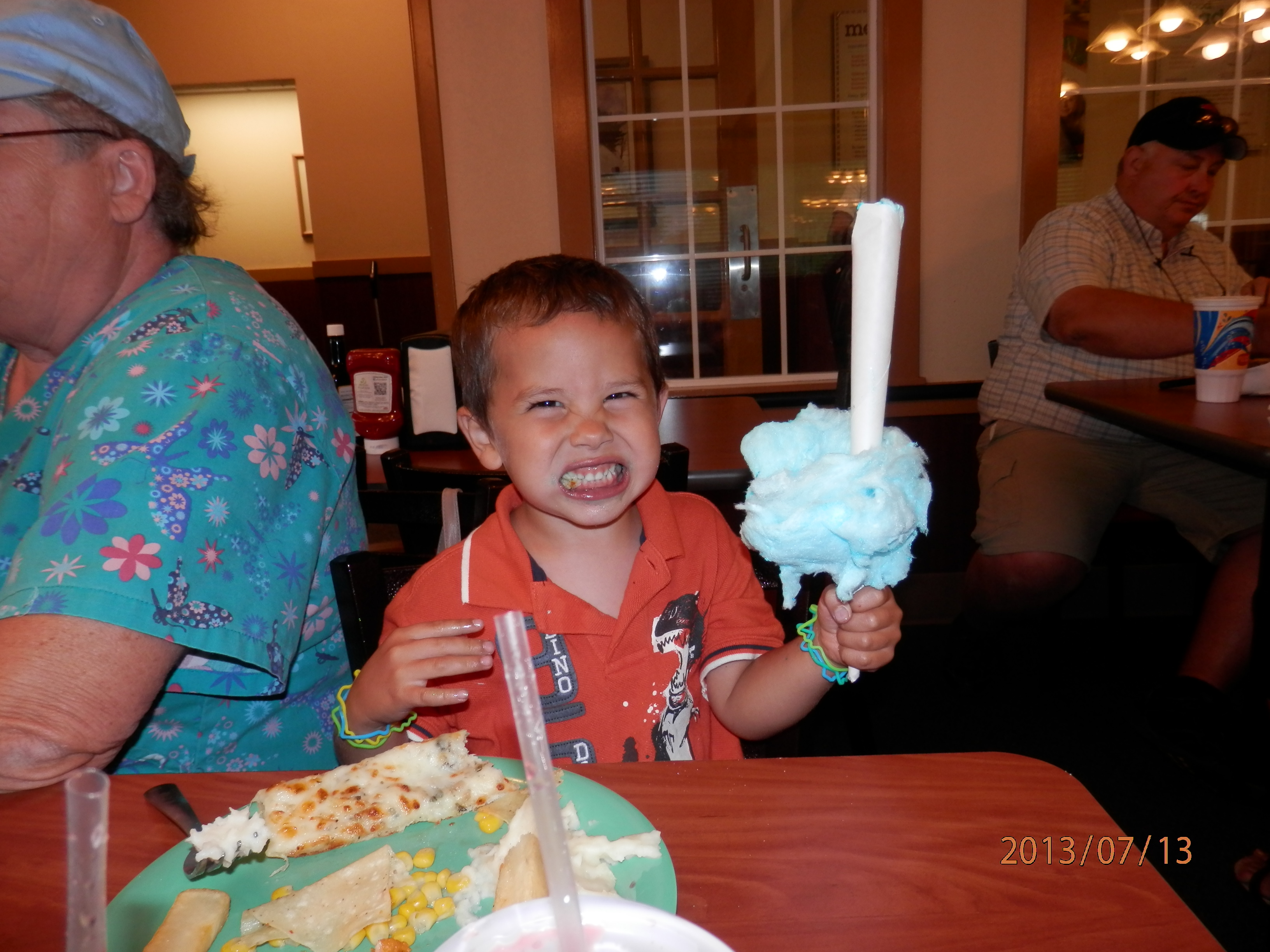 After the carnival, we went to the Golden Corral and ate until we felt like we would explode! It was yummy and the waiters even sang Happy Birthday to Owen. He was pretty excited about that.