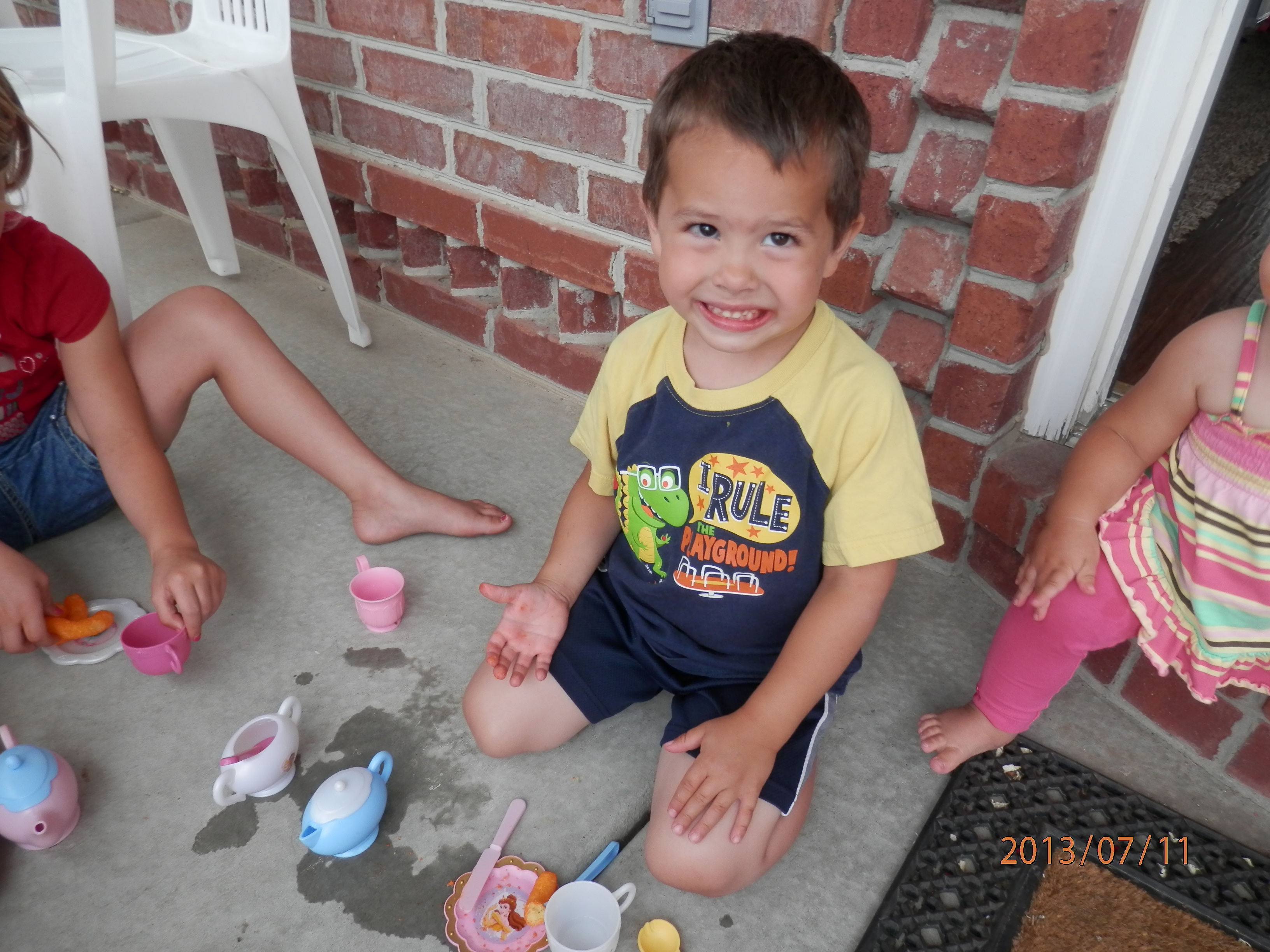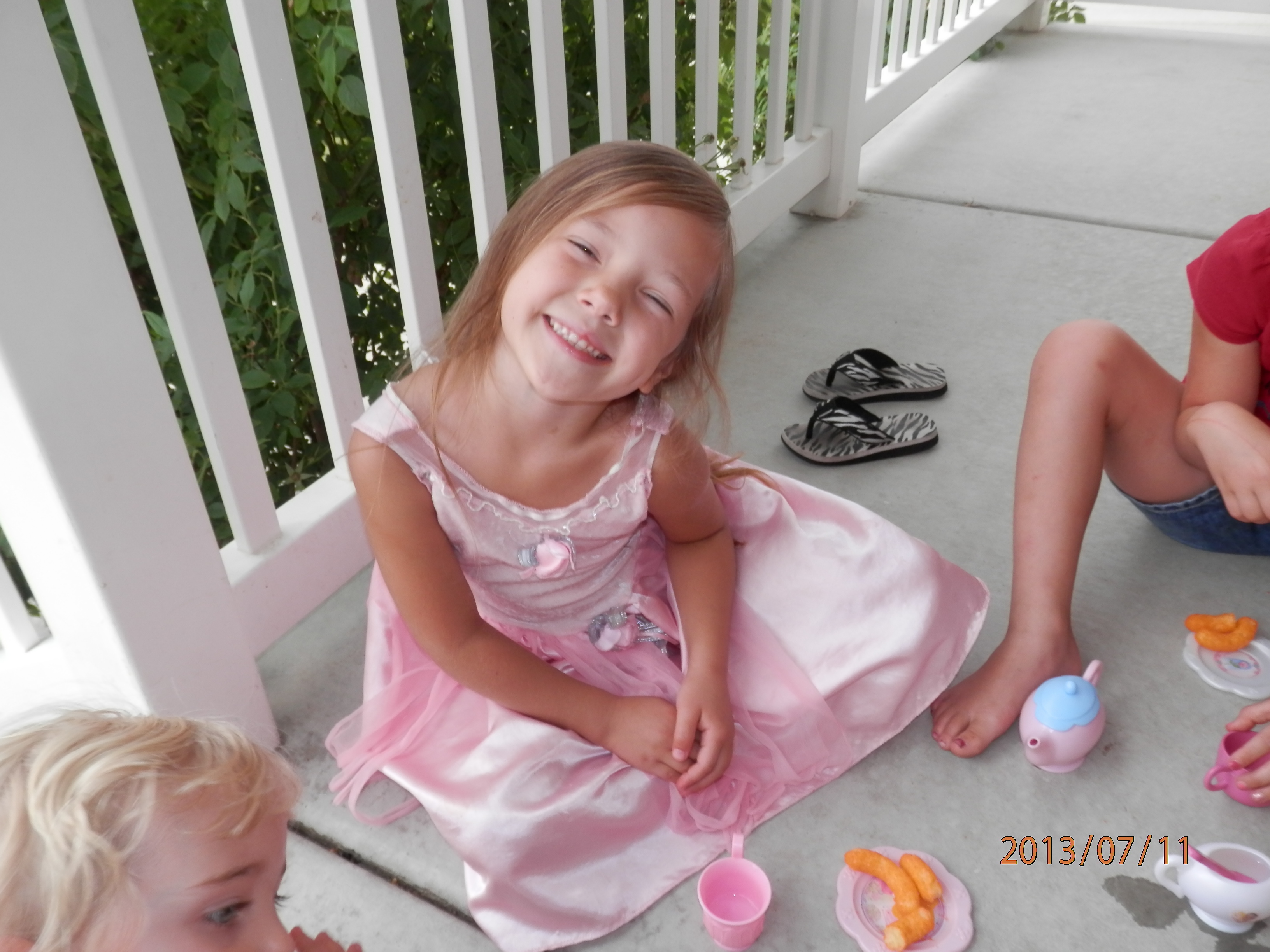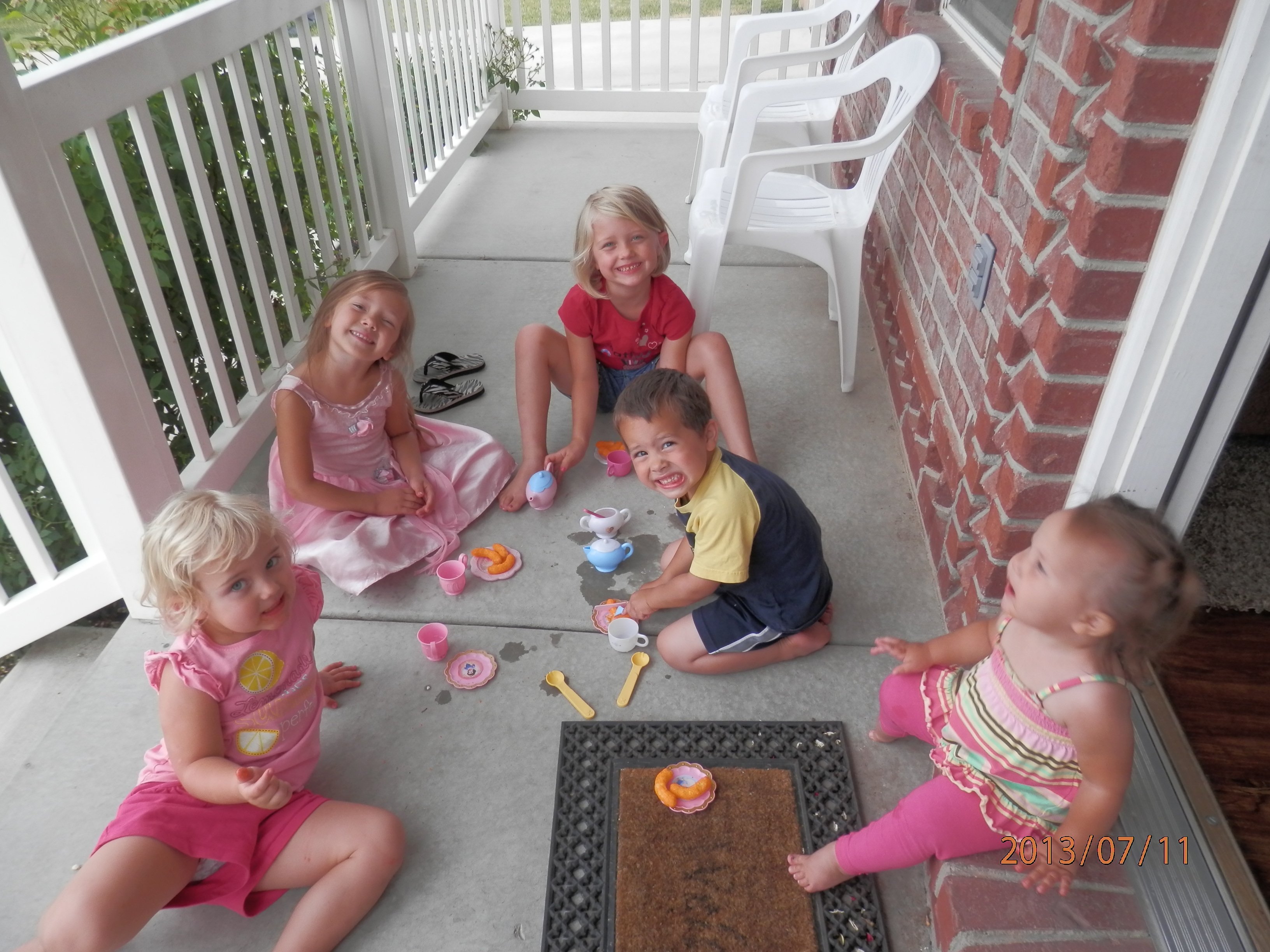 The kids also have had fun playing with the neighbor kids. They wanted to set up a little picnic on our front porch one day complete with blanket, water, sugar, and food. They sure had a blast pretending to be princesses and a prince.