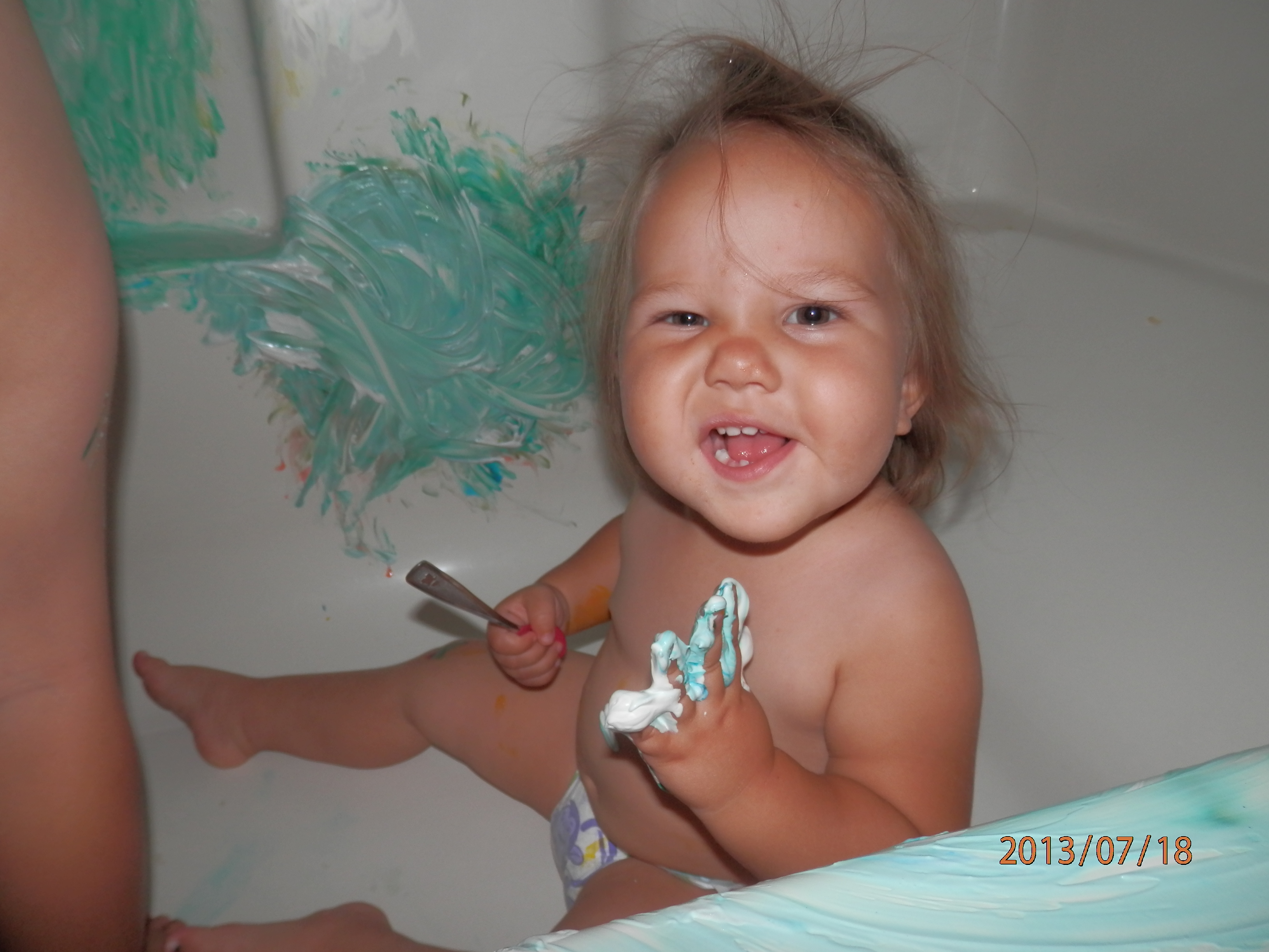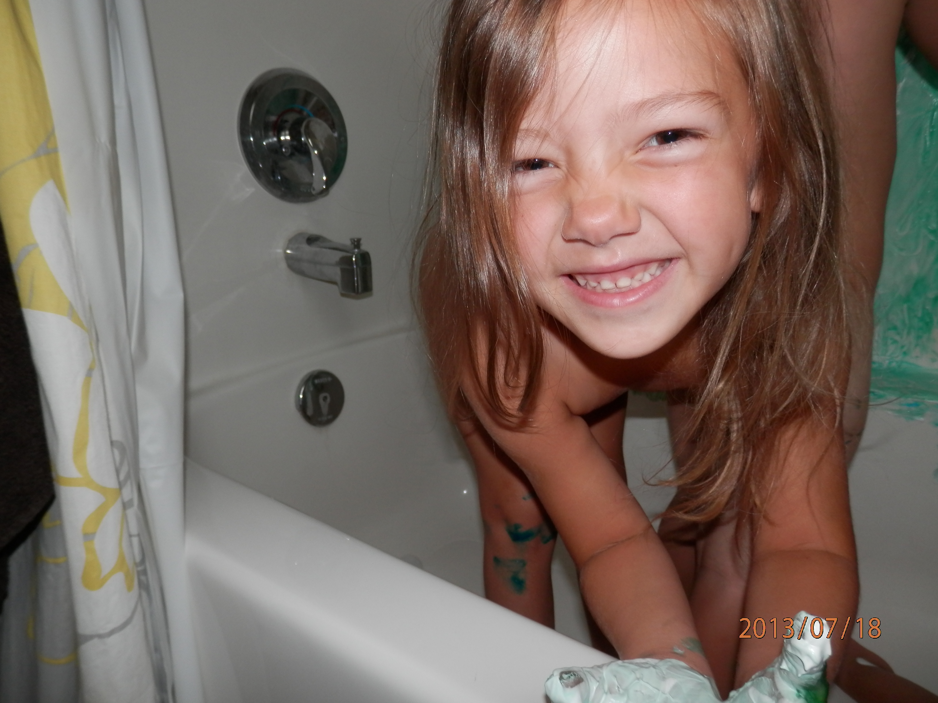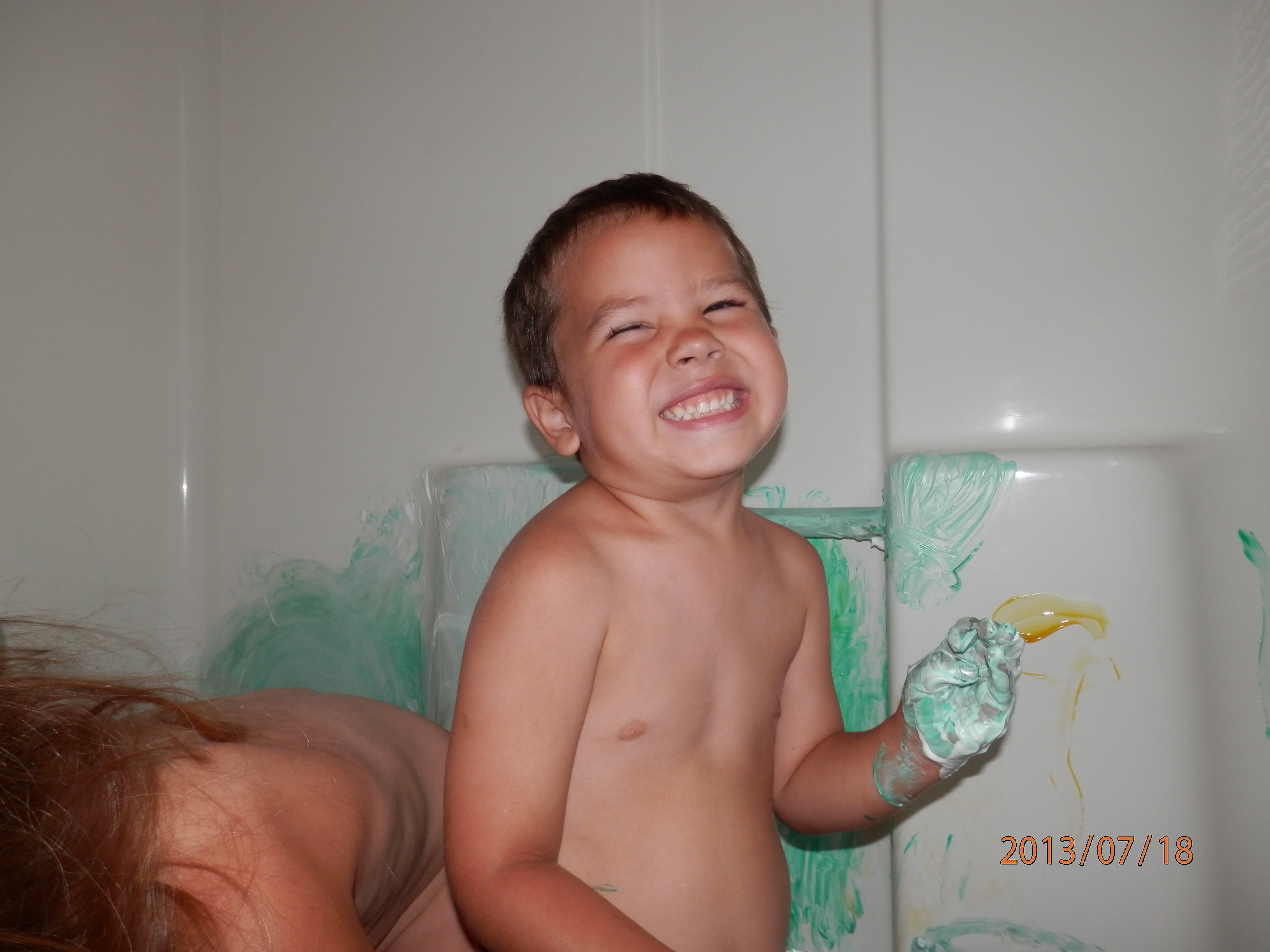 With summer, we have a lot of time to kill and try to keep ourselves busy. So we get creative with our fun. We decided it would be fun to let the kids paint the bath tub! Oh did they just LOVE this idea! It was so fun listening to them talk and laugh…one of the many joys of having little children!