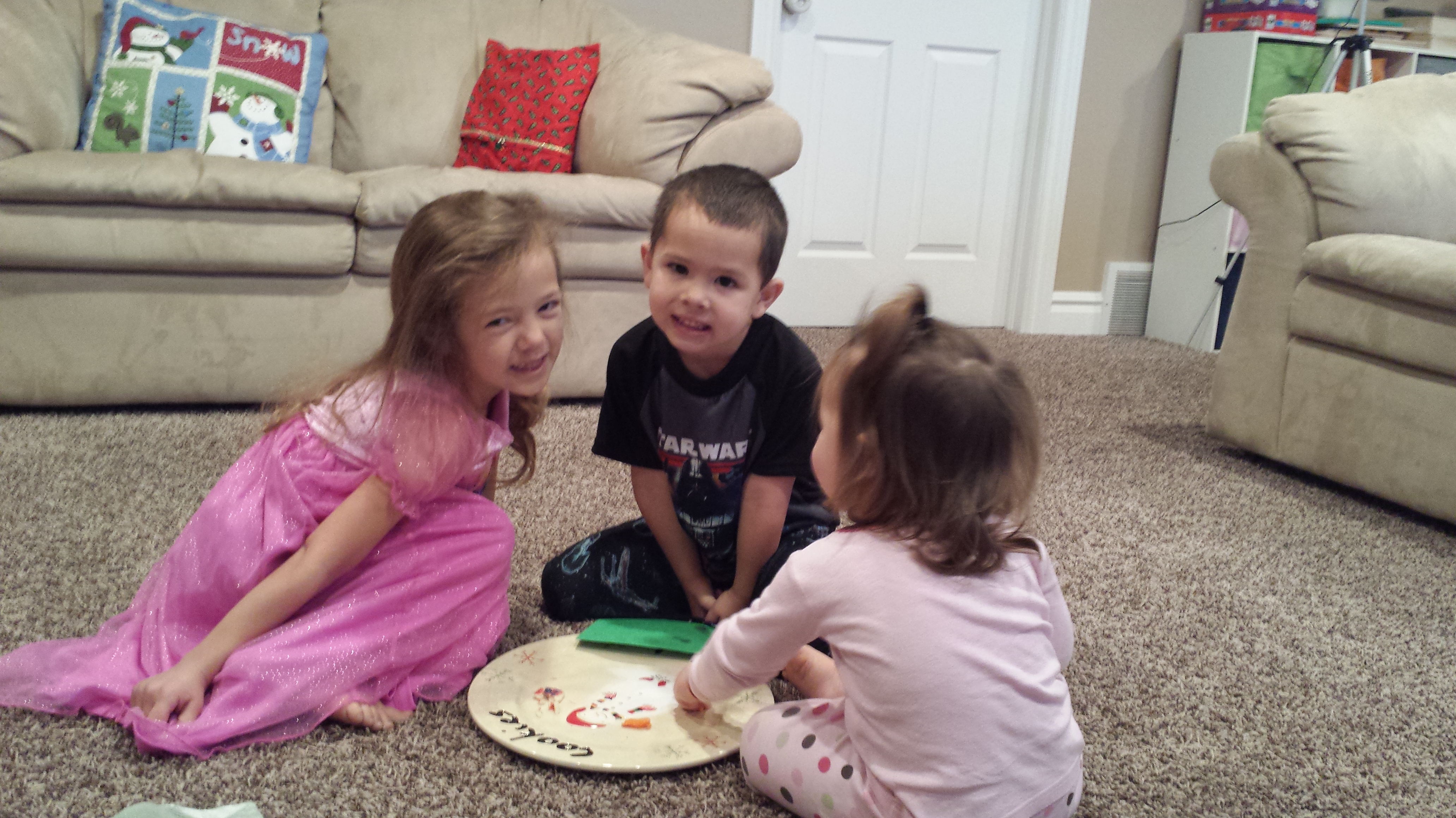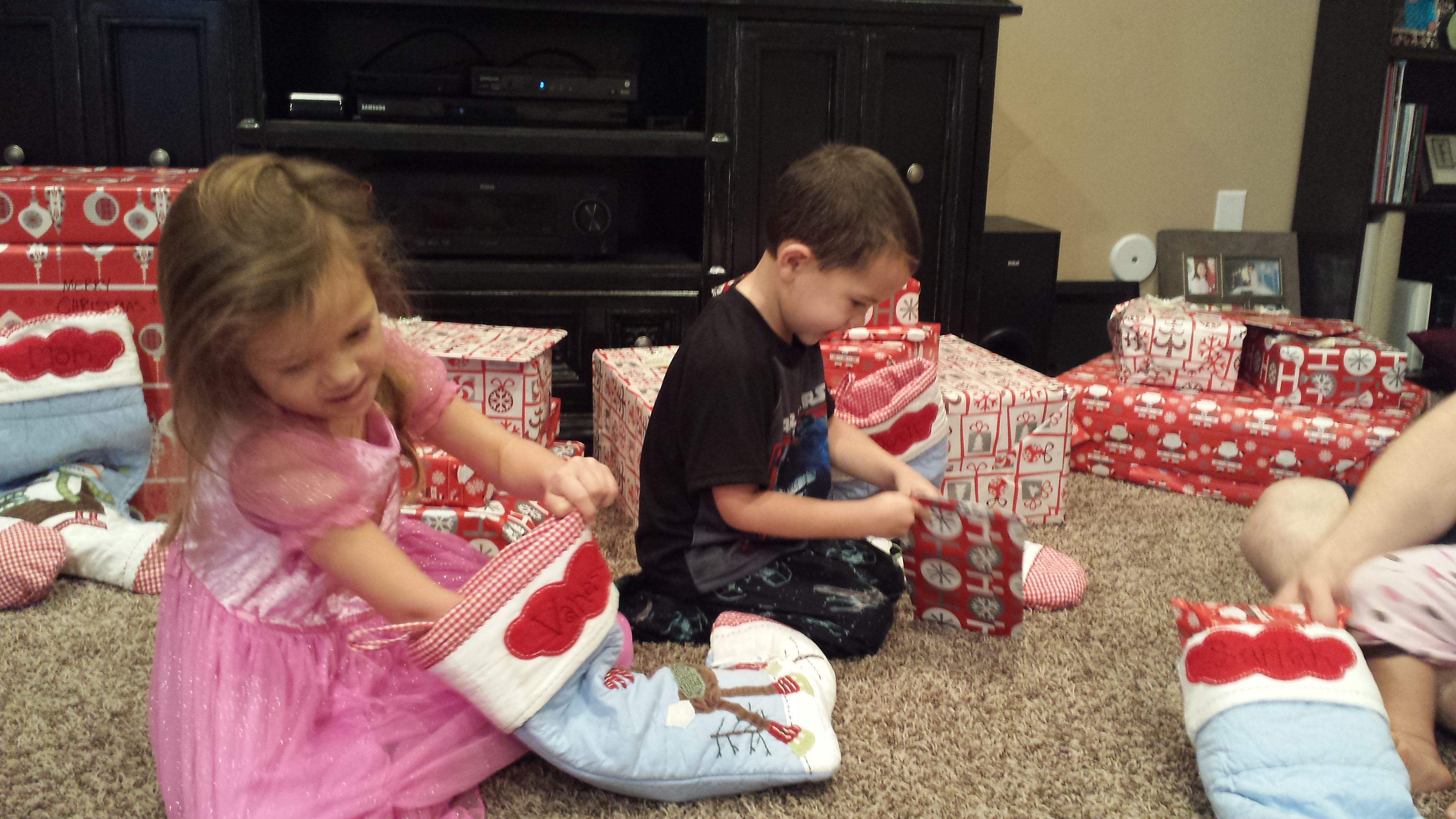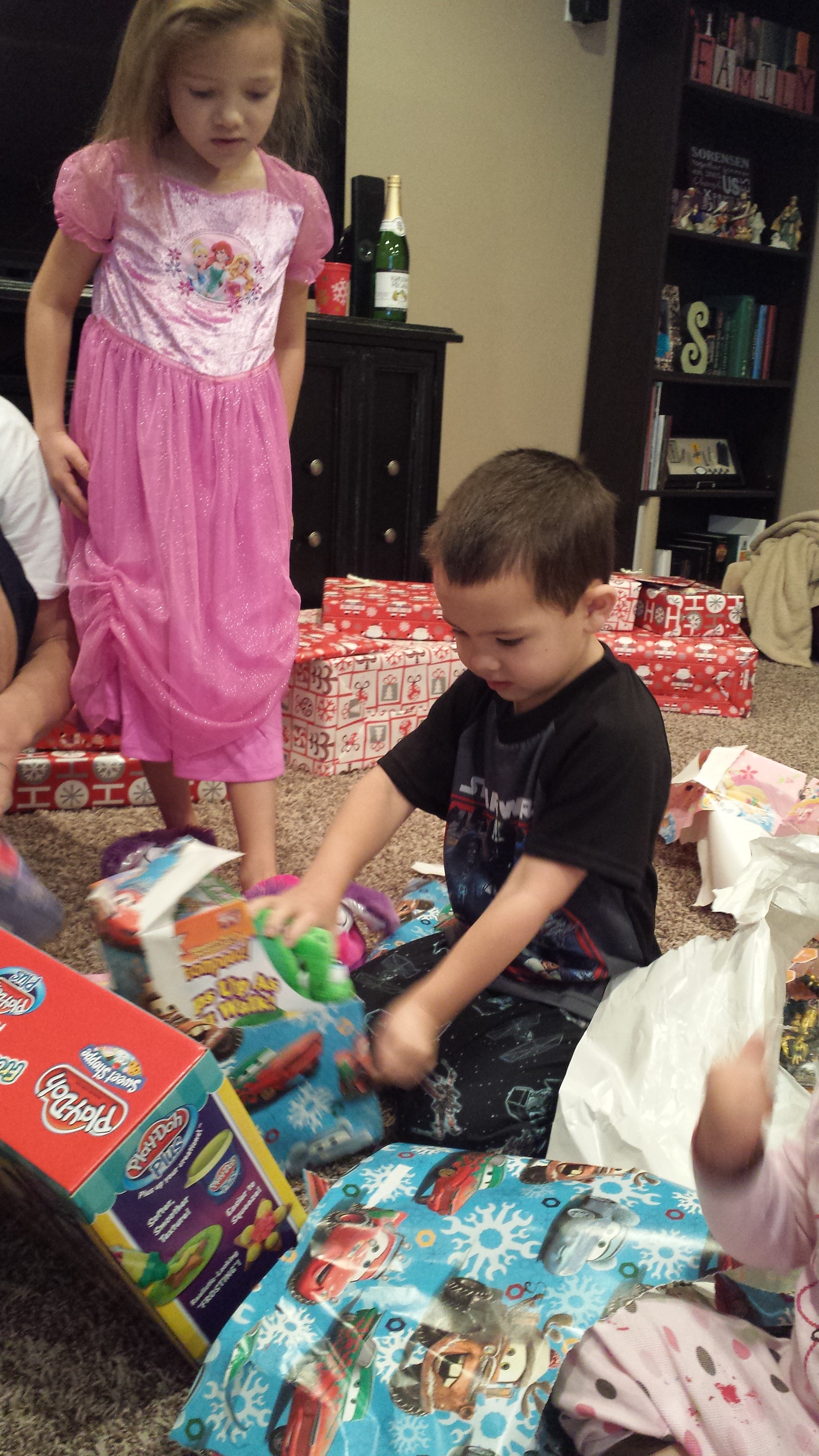 Christmas morning was as success! The kids actually slept so we just took our time waking up. When they finally did wake up they were so excited to see all the presents under the tree and that Santa came and ate there cookies and even left them a little letter. We decided to all meet in Vanessa’s room and have some cereal before we started opening presents. We quickly ate our meal and gathered in the front room and began opening presents! Grandma and Grandpa Sorensen came while we were opening presents to see all that the kids got. They were excited to show them all of their new toys!