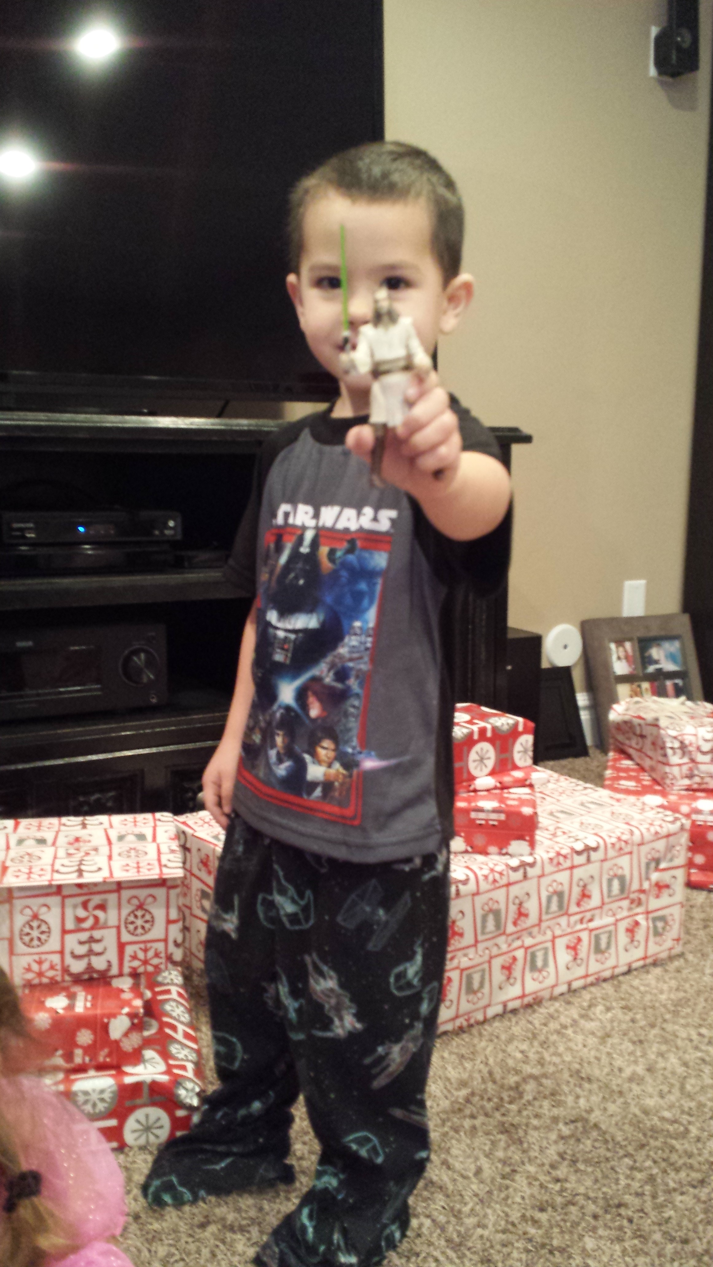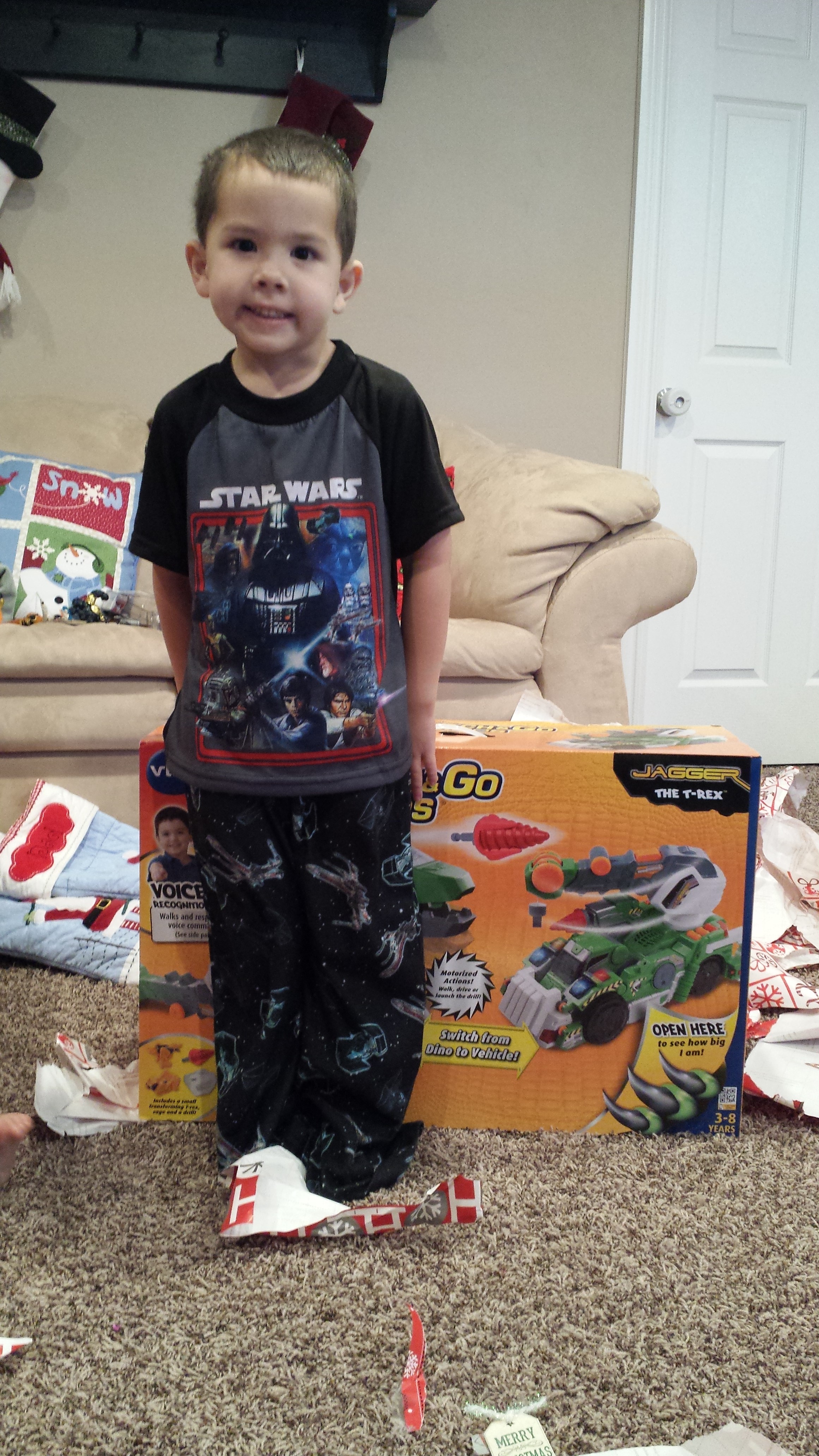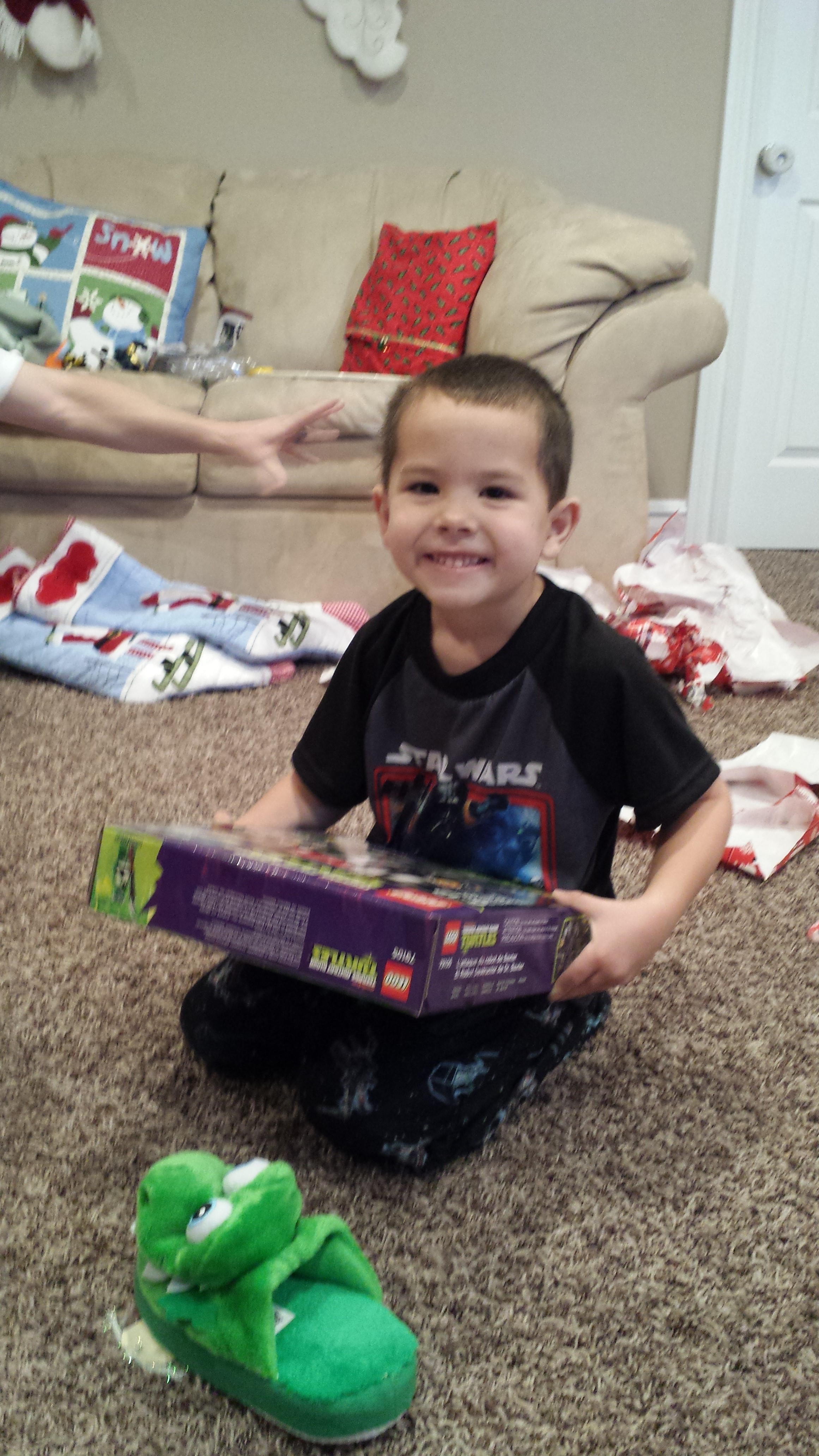 Owen made out with a Ninja Turtle Lego Set, a Star Wars Lego set, Stompies, a Dinosaur Book, Jagger the Switch and Go Dino, Bakery Playdough set, and a Star Wars toy. He was so excited to get Jagger and the Legos. Jagger has voice command so he had fun telling him what to do and seeing him move.