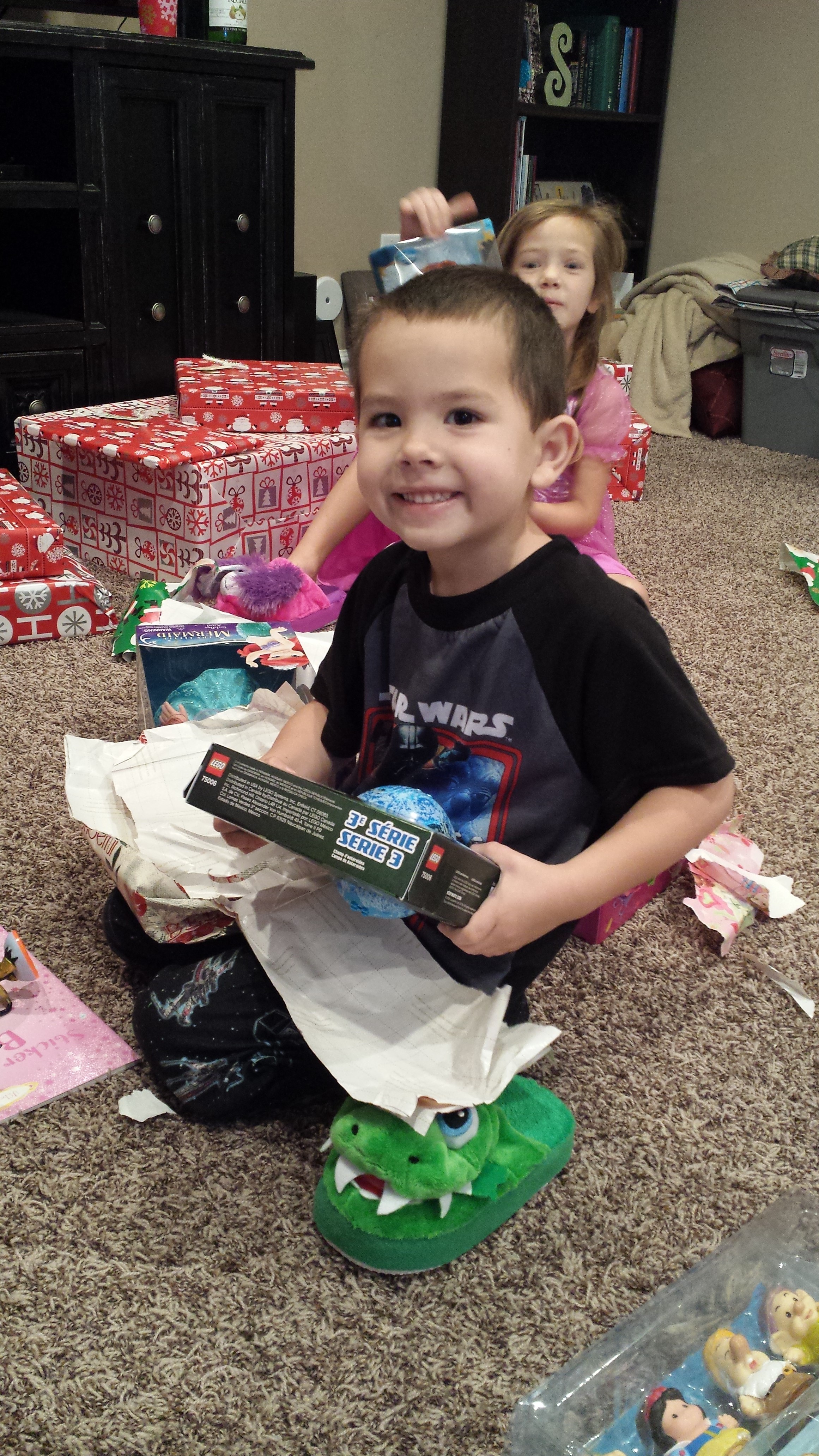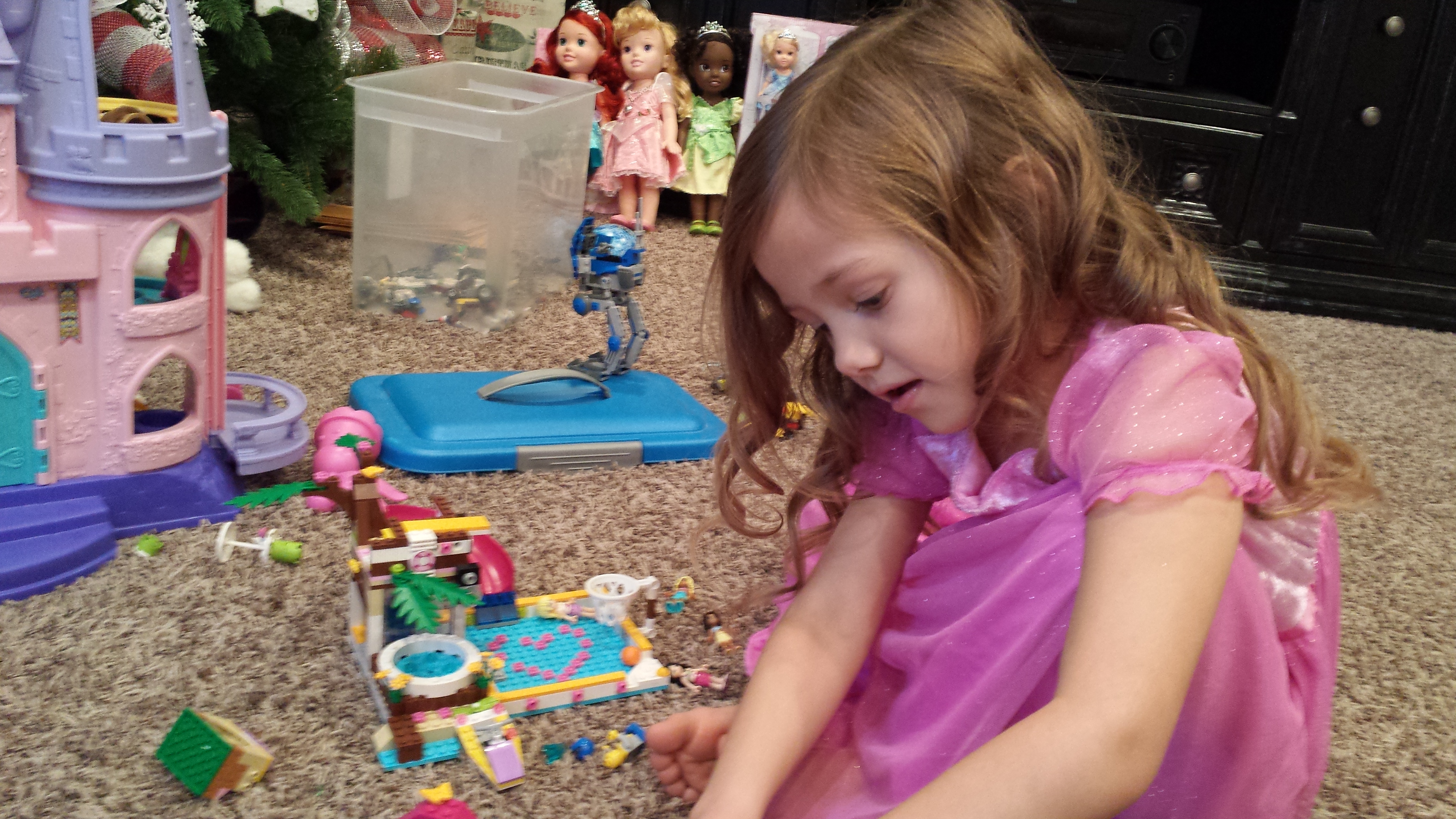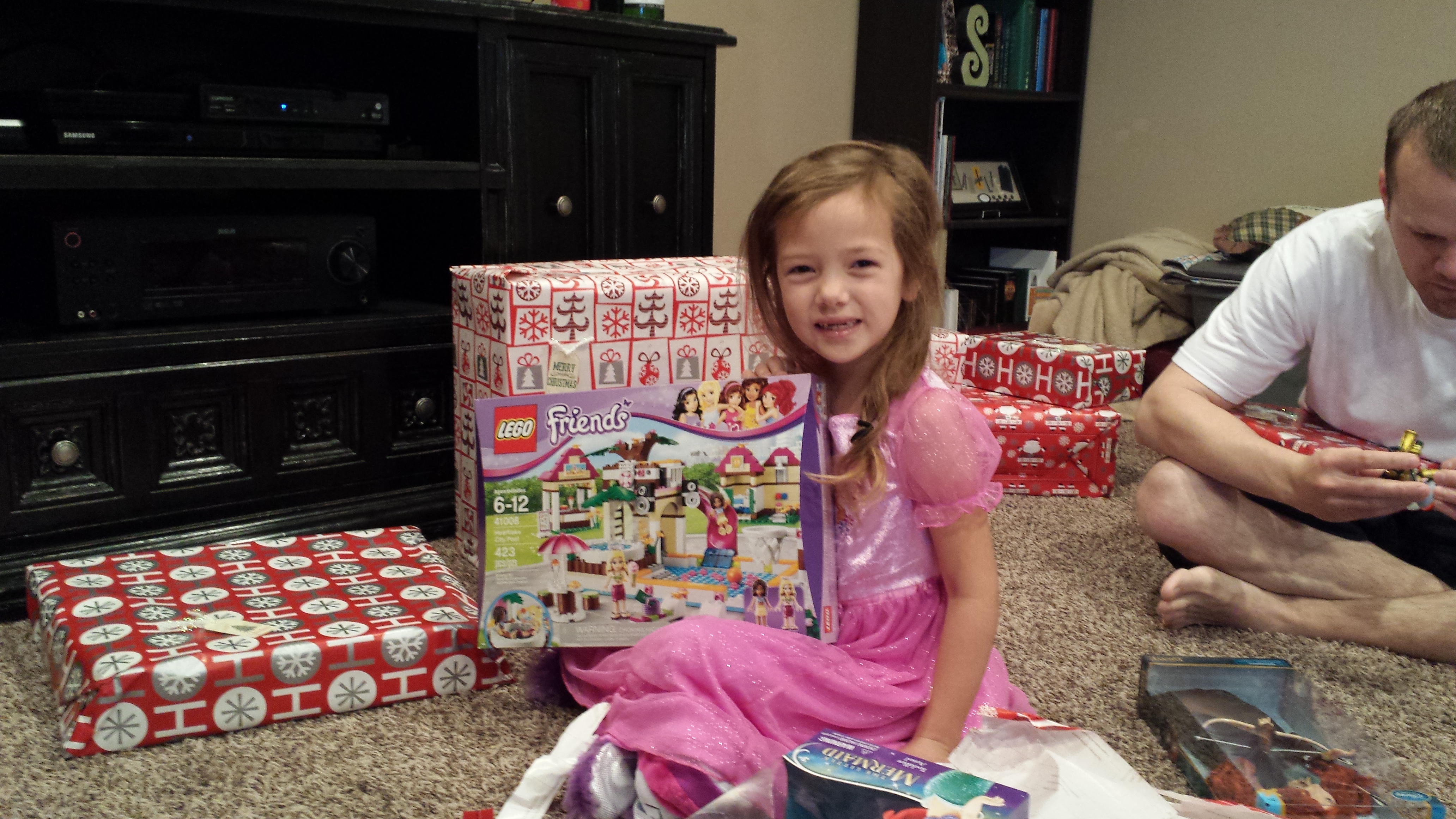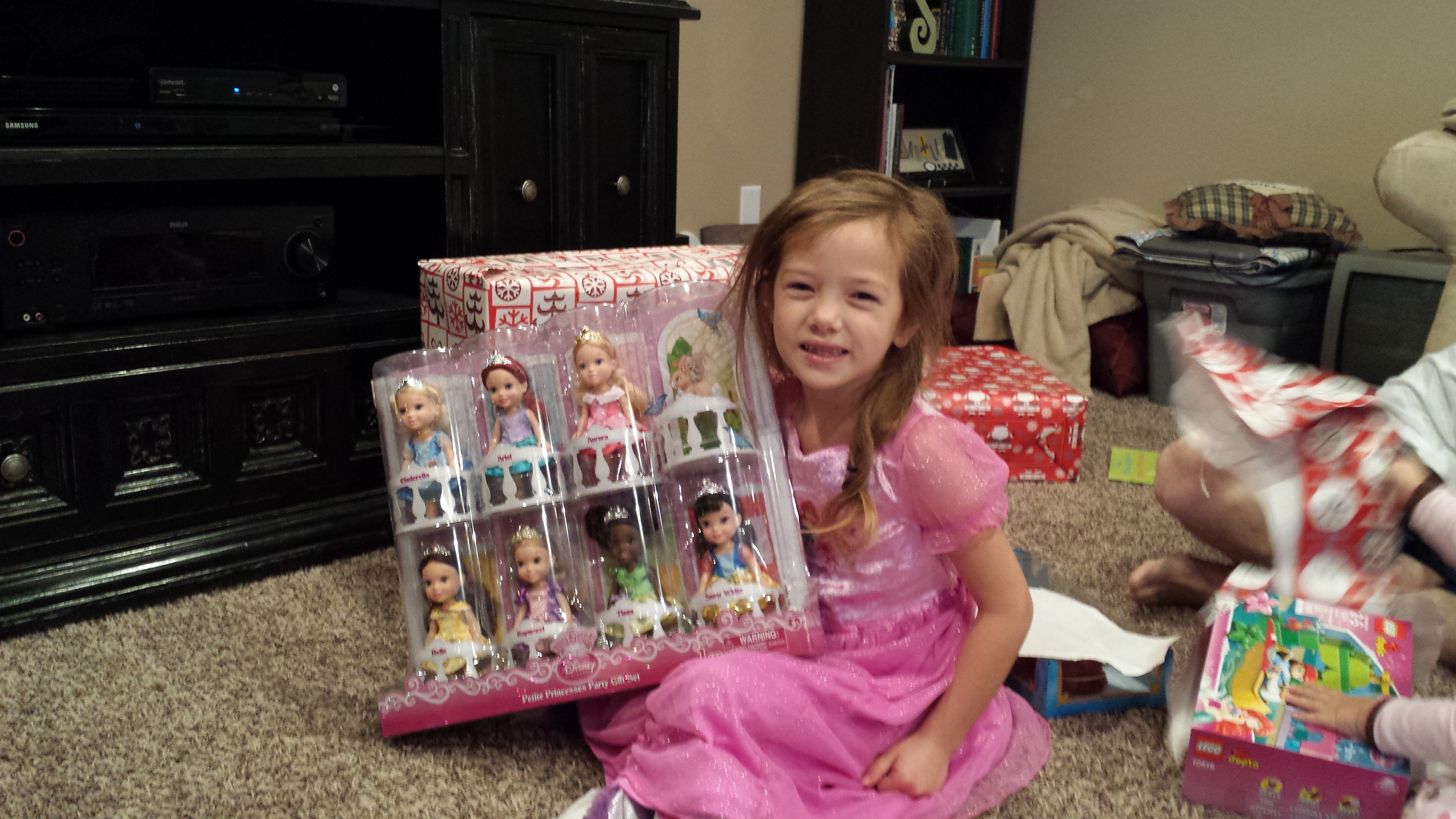 Vanessa treasures this year included a Princess Playdough set, Ballerina Sticker Book, Friends Lego Set, Stompies, Ariel doll and the Disney Petite Princesses Set. She was very excited about the Stompies and dolls. She also was excited to get some Legos.