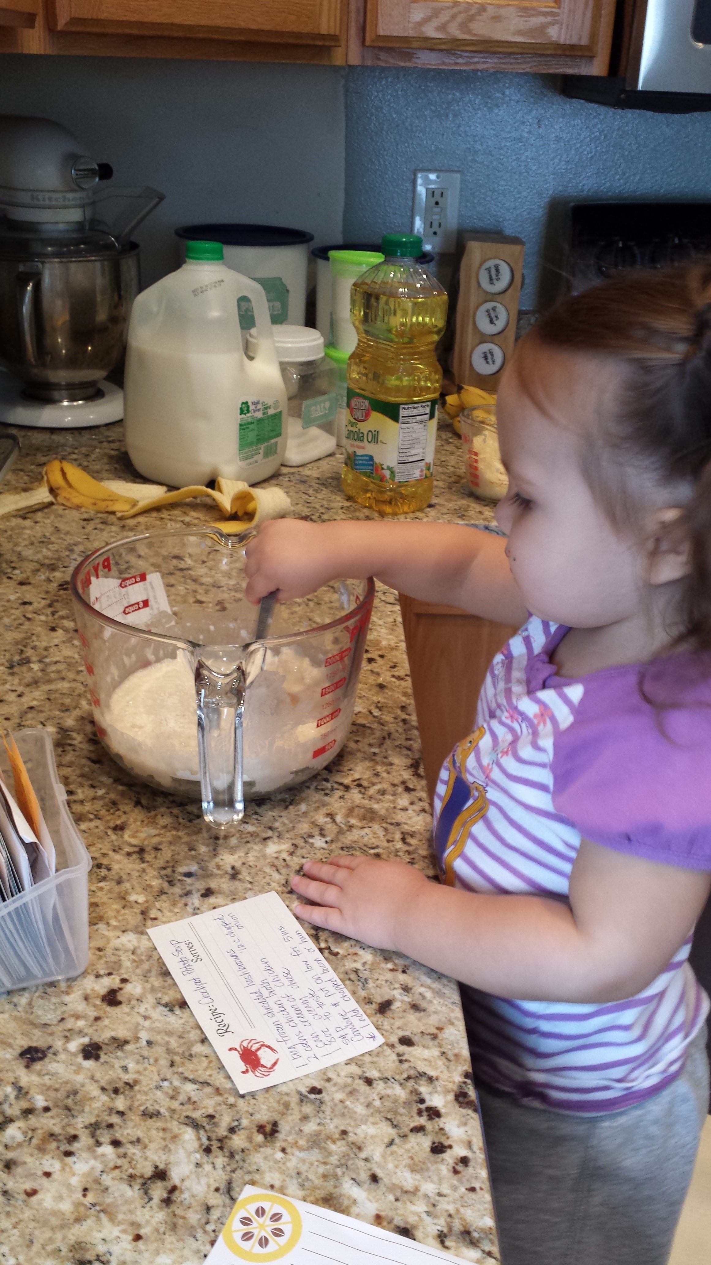 Sariah is becoming more interested in the things I do and loves to help out. I thought it would be fun to have her help me make some cookies. She loved every minute of helping me. She loved being able to pour in all the ingredients and stir the mix. She also delighted in eating the cookie dough right along with me! I have such fond memories of making cookies with my mom and grandma and I hope that I can create some of the same with my children.