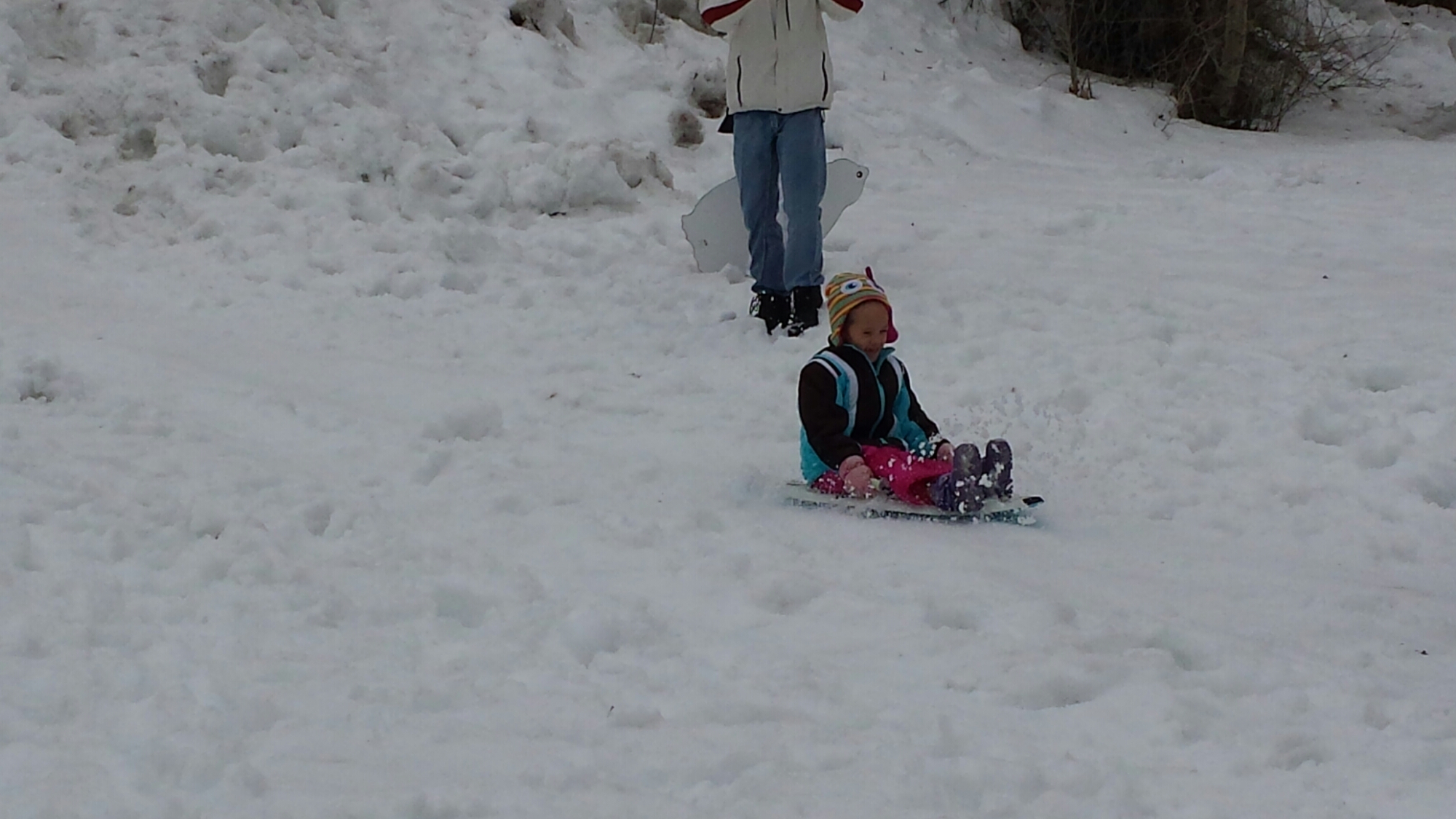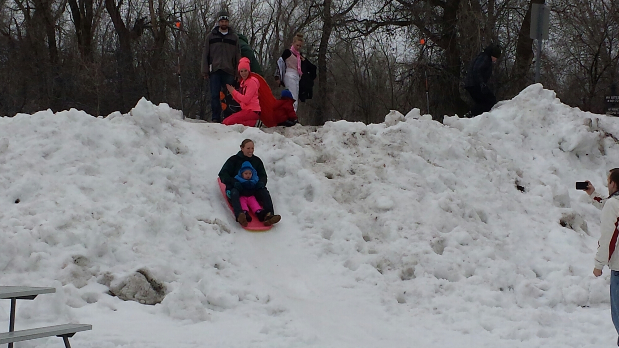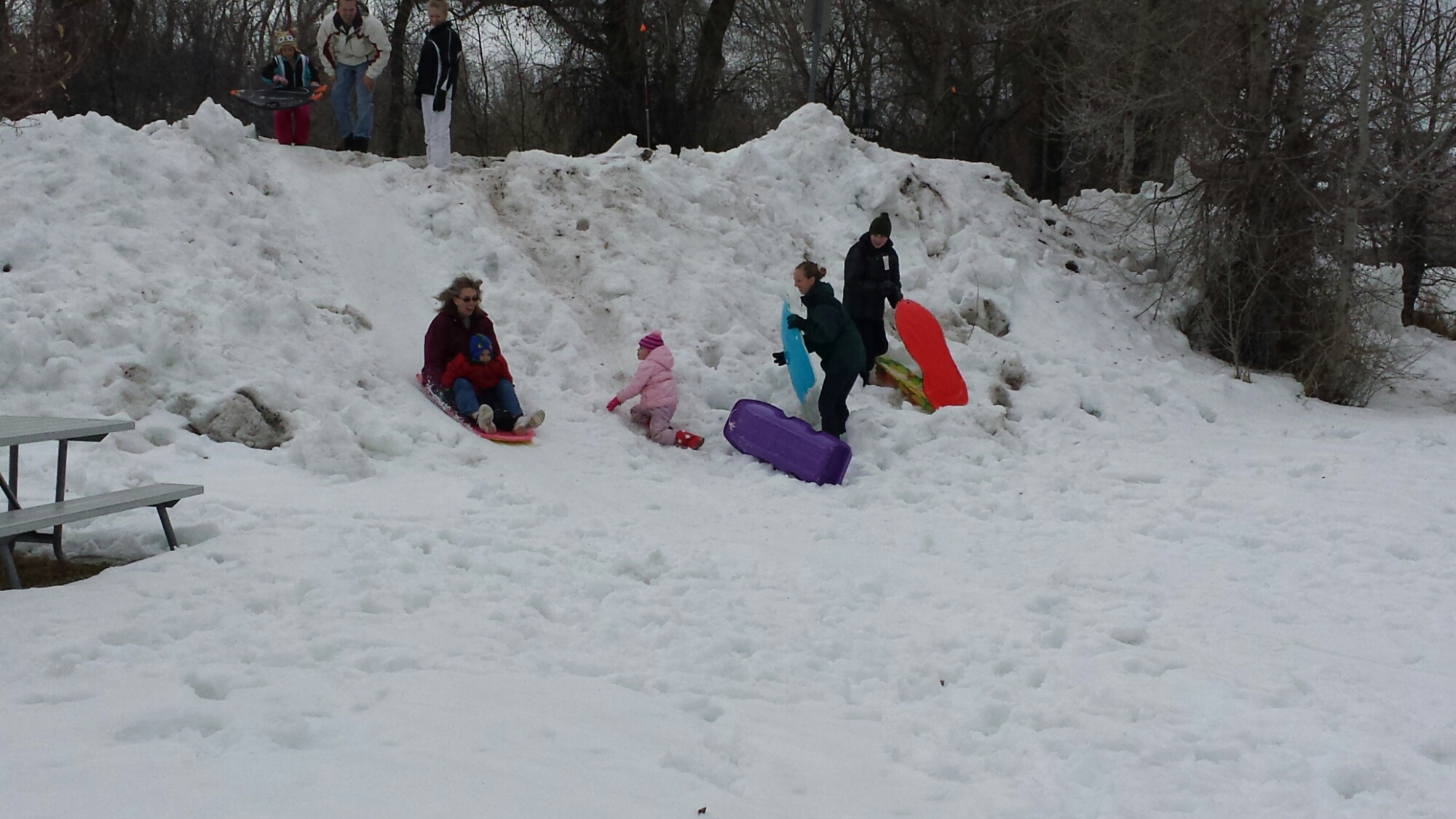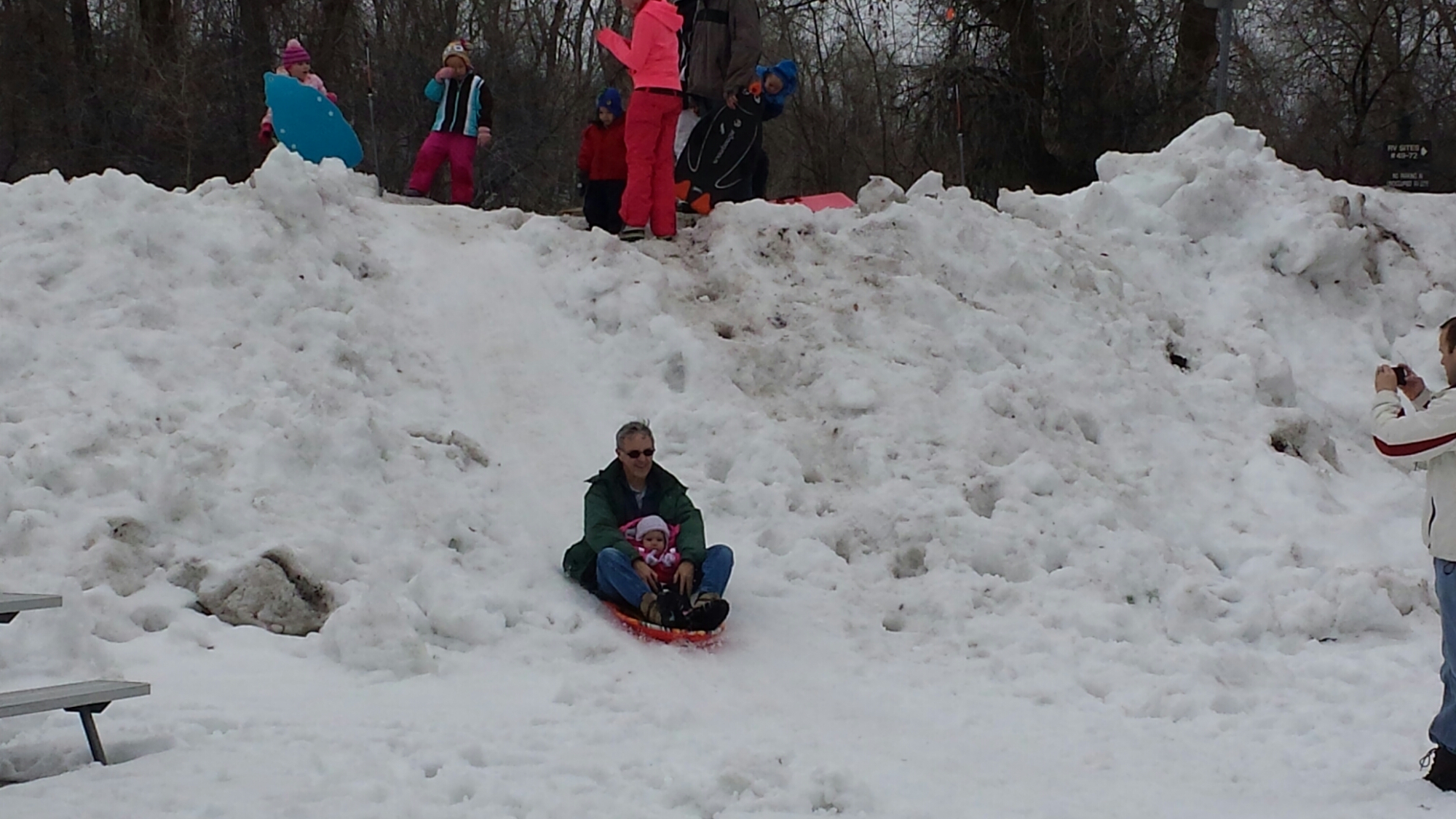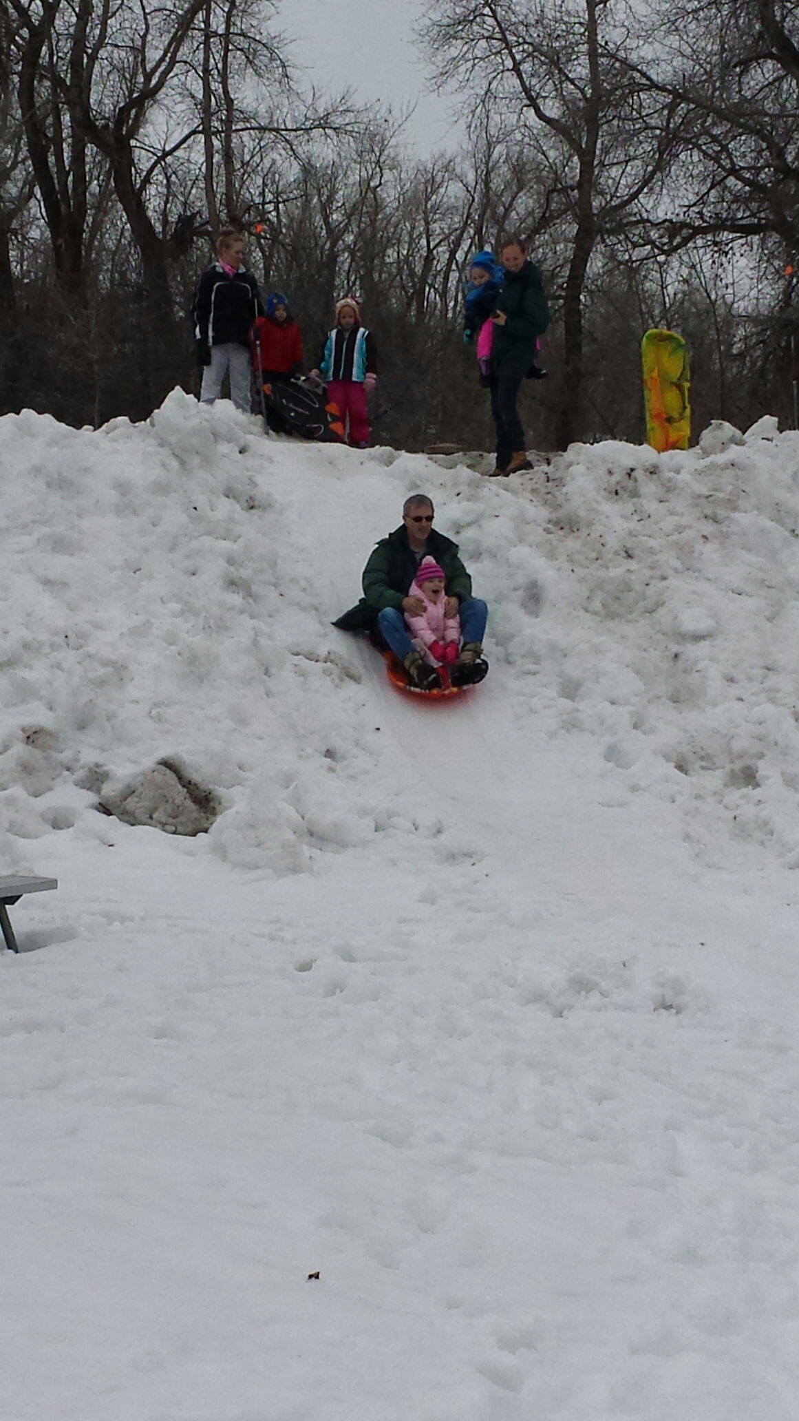 There wasn’t too much snow on the big hill that we usually go sledding on but we found the perfect snow packed hill for the kids. They were out sledding for hours and had so much fun! By the time we made them come in, their snowsuits were soaked, their little cheeks were nice and rosy, and they had huge smiles on their faces! Vanessa stated that it was the BEST DAY EVER!!! We would all have to agree!