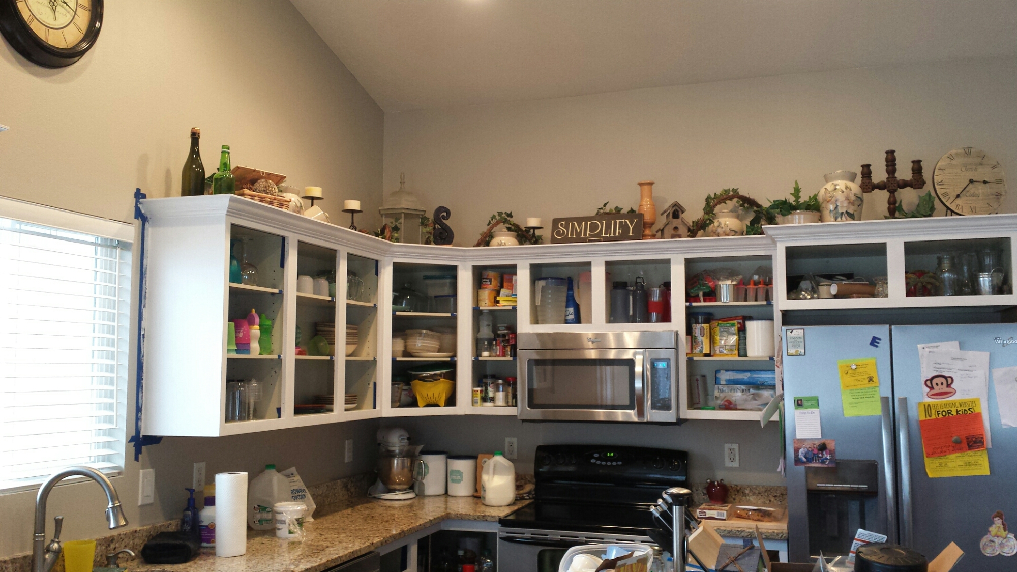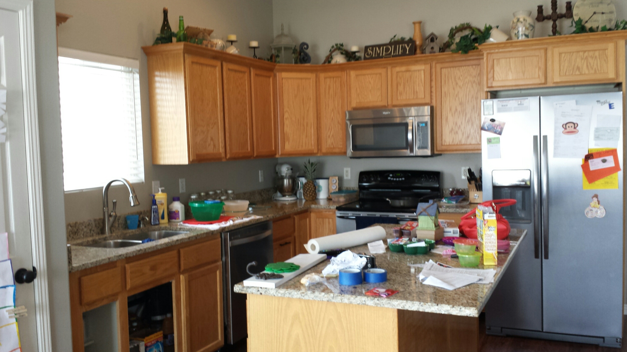 So, I started to research tips on painting oak cabinets. We had used a cabinet transformation kit on our last home but I didn’t want to brush them. Let’s be honest, an 8 month pregnant woman sitting and squatting all day painting would not be good. I decided that I wanted them to be white with no glaze. Mark was a bit hesitant with the no glaze but I reassured him that if we didn’t like it plain we could always add it later.