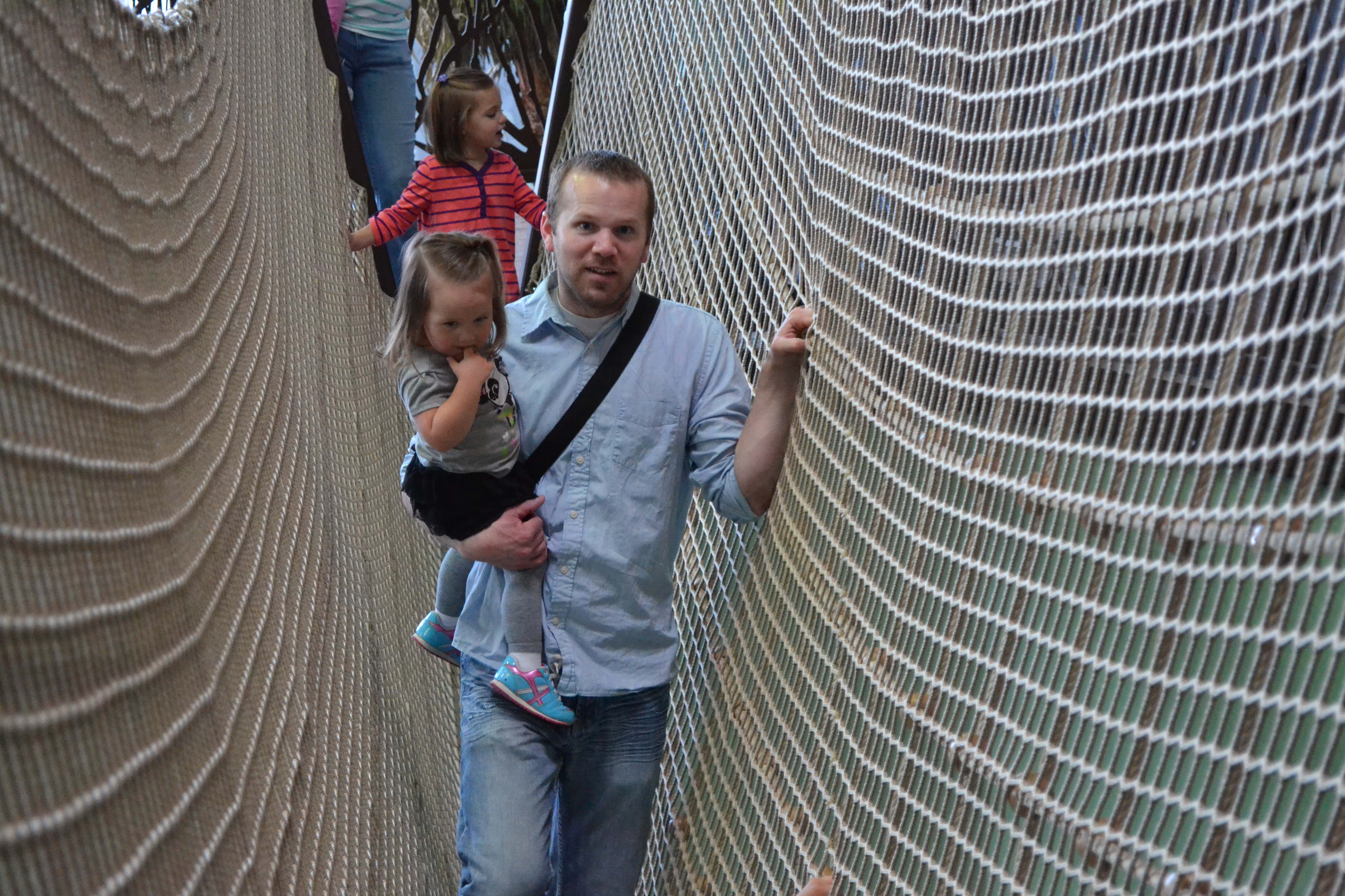 For an activity, we decided to take the kids down to the grand opening of the new Living Planet Aquarium. We had been to the old one a few years ago and the kids loved it. The new building is much bigger and very impressive. The kids were able to walk across a rope bridge which they thought was pretty darn cool! We were able to see lots of different animals like turtles, fish, otters, penguins, sharks, toucans, ducks, octopus, and much more. Our favorite things that we saw were the penguins, otters, and sharks. We were able to watch the penguins and otters swim and dive which was so neat. The sharks and fish are housed in a wall to wall aquarium and they even had a tunnel that you can walk through and be surrounded by the water animals. The kids thought that was so cool!