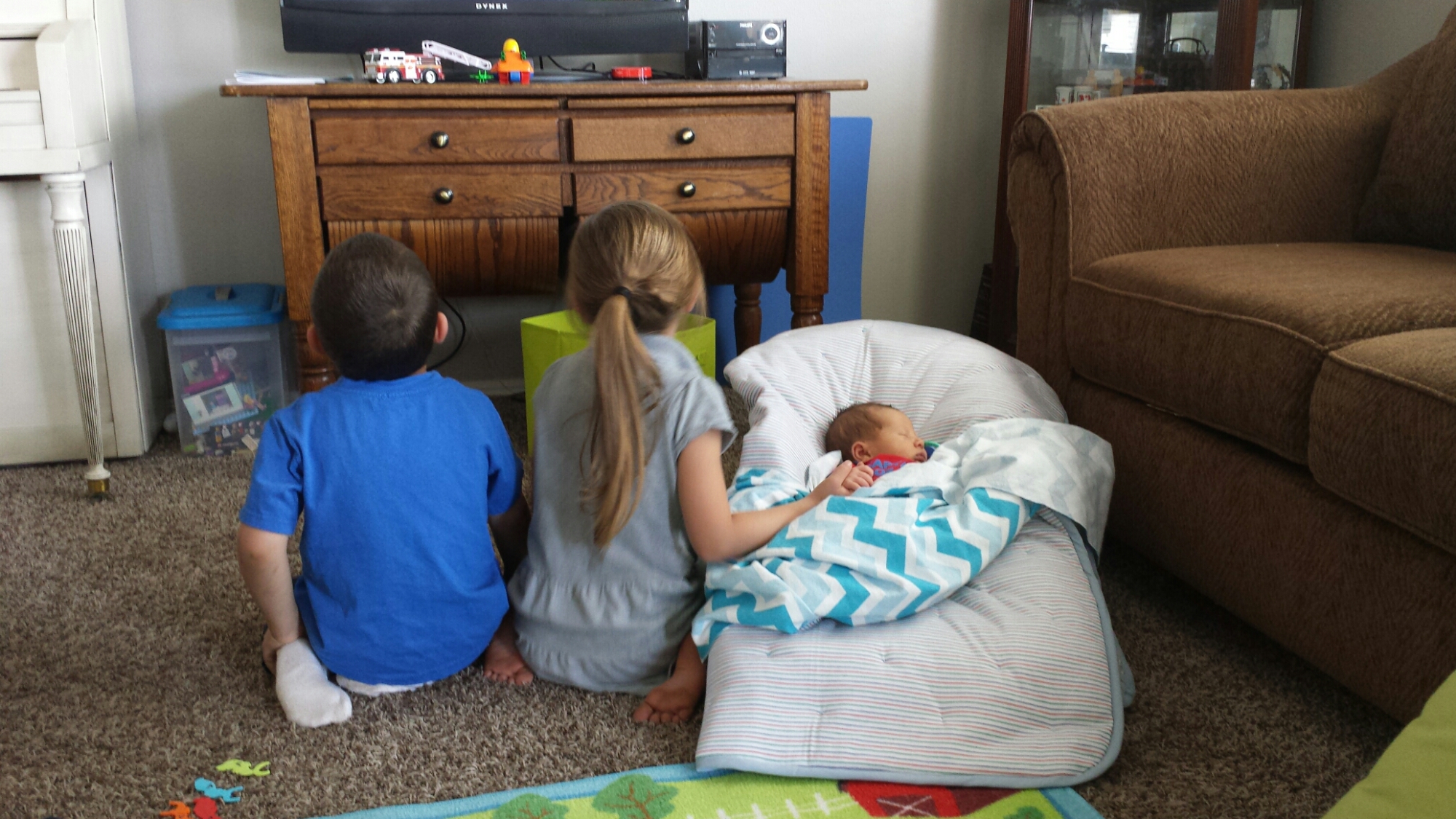 All three kids just adore their new baby brother! They are always asking to hold him or help me with him. Sariah likes to make sure he is covered with a blanket and has a toy or two to keep him company. I love it and Chad doesn’t seem to mind all the love either. He truly is LOVED!!