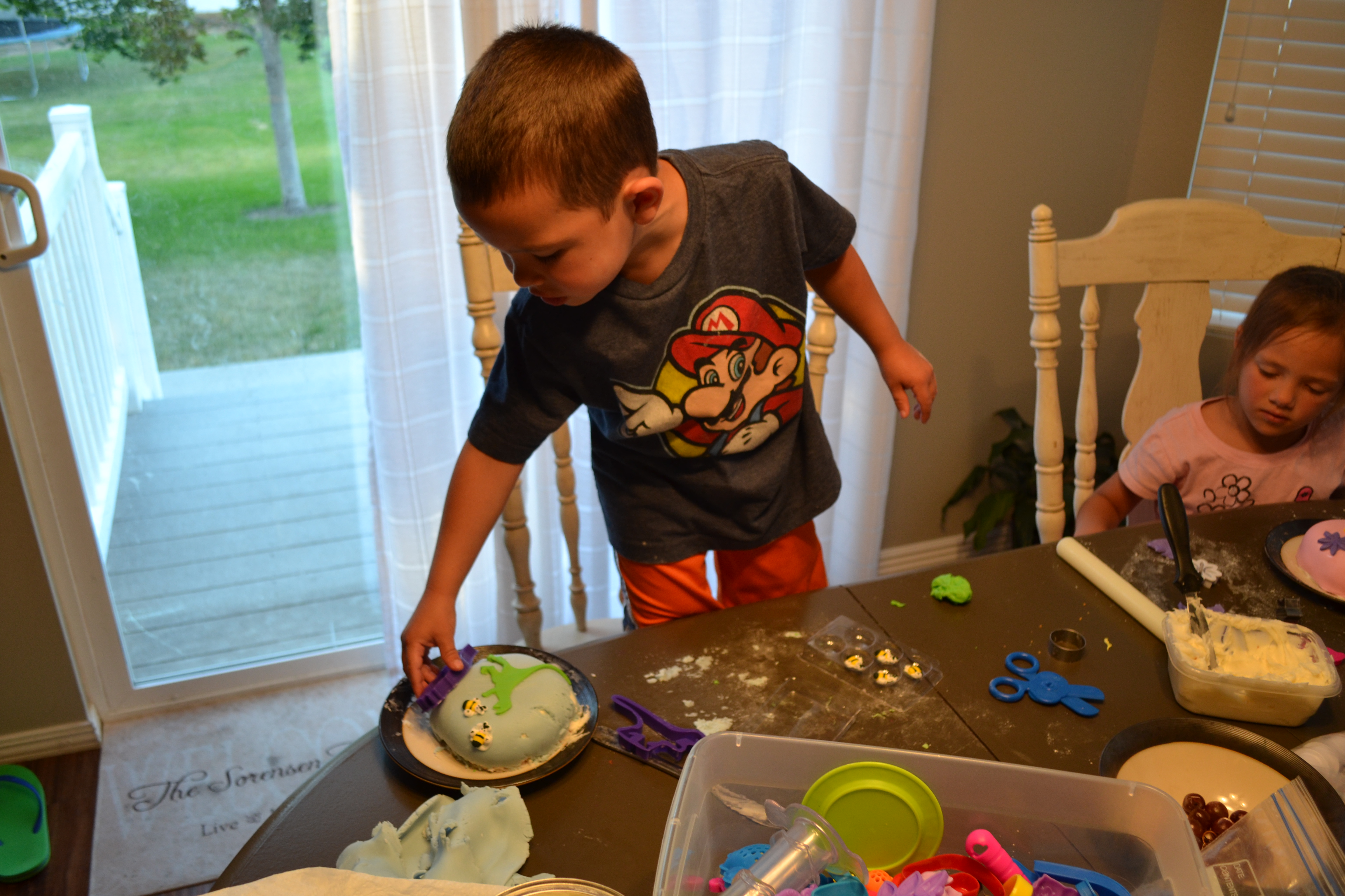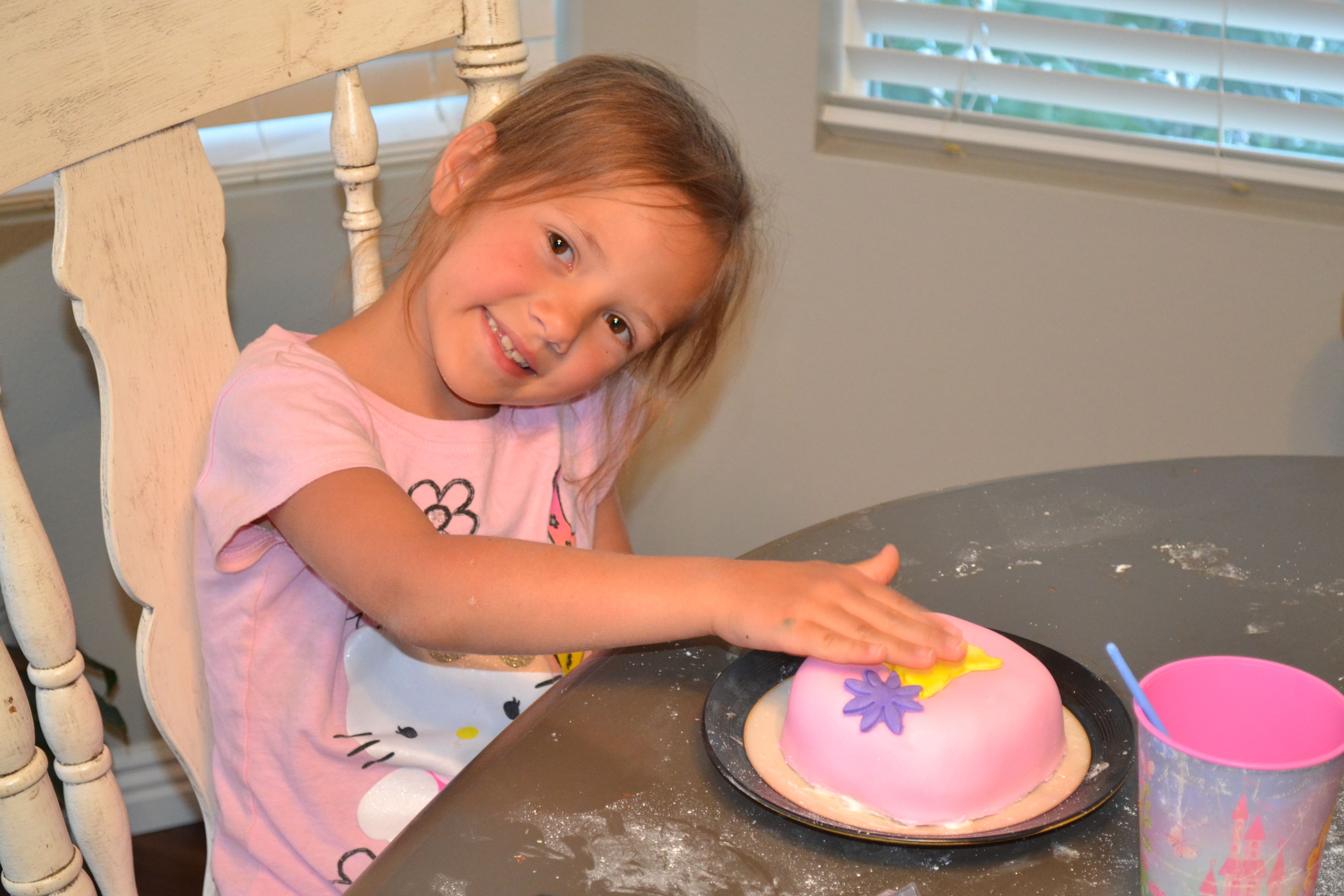 Vanessa was in charge of our activity for Family Home Evening. She chose to learn how to decorate a cake. I had been making a few cakes for customers so I had a bunch of left over fondant and icing that we used to help decorate our cakes. I baked each kid their very own mini cake so they could personalize it how they wanted. The kids had fun frosting the cake and then rolling out the fondant to overlay on the cakes. I was very pleased to see how well each of them did! Vanessa really took care in how she placed and handled it and it turned out looking really smooth!