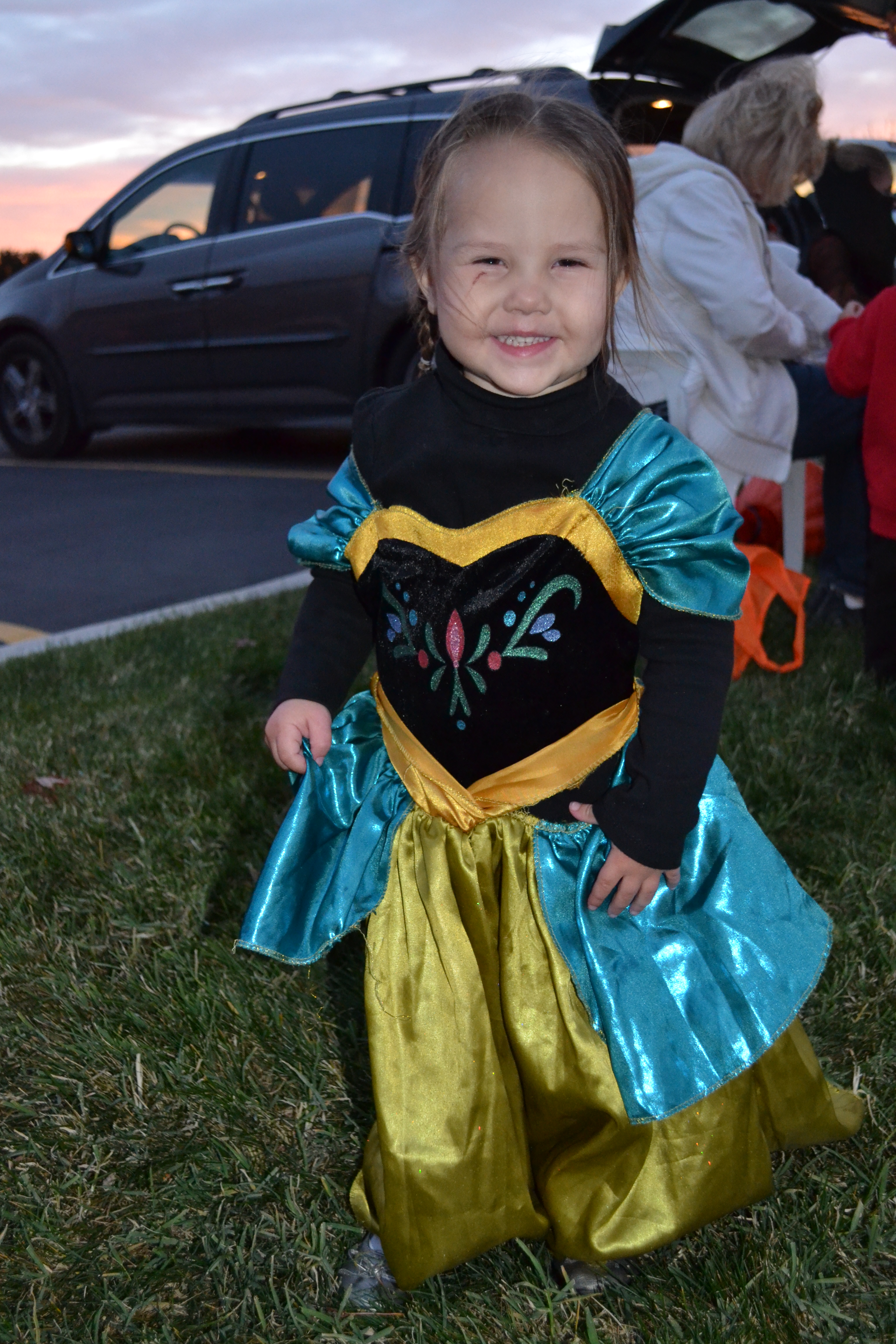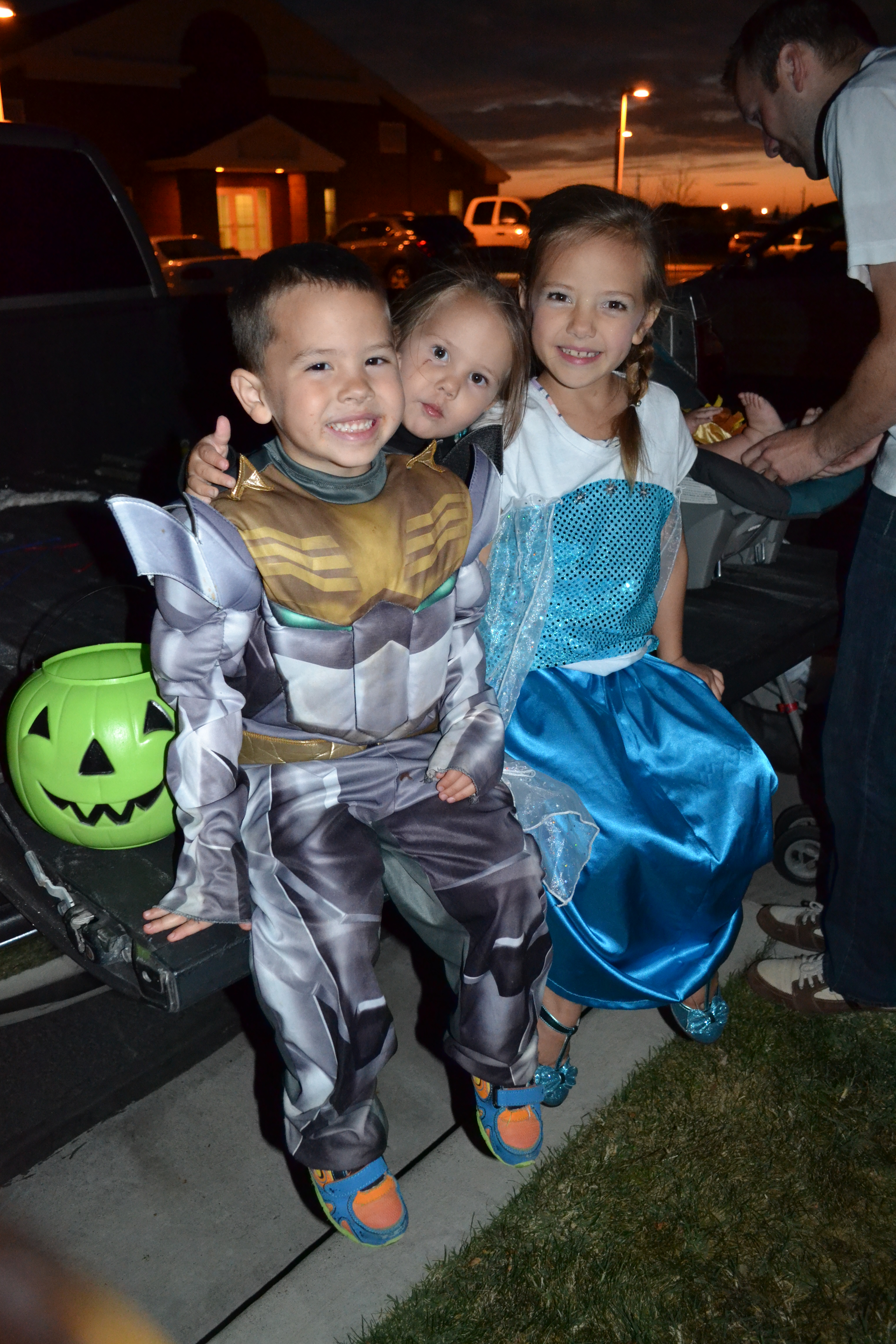 Next up was the ward Trunk or Treat. We met with lots of neighbor and friends and enjoyed a dinner outside before letting the kids go trunk to trunk and fill their bags full of goodies. There were lots of cute costumes and even a scary one too! Sariah did not like the scary man and wouldn’t let go of my leg when he was near by. The other kids didn’t like him much as well but it was a very creative costume!