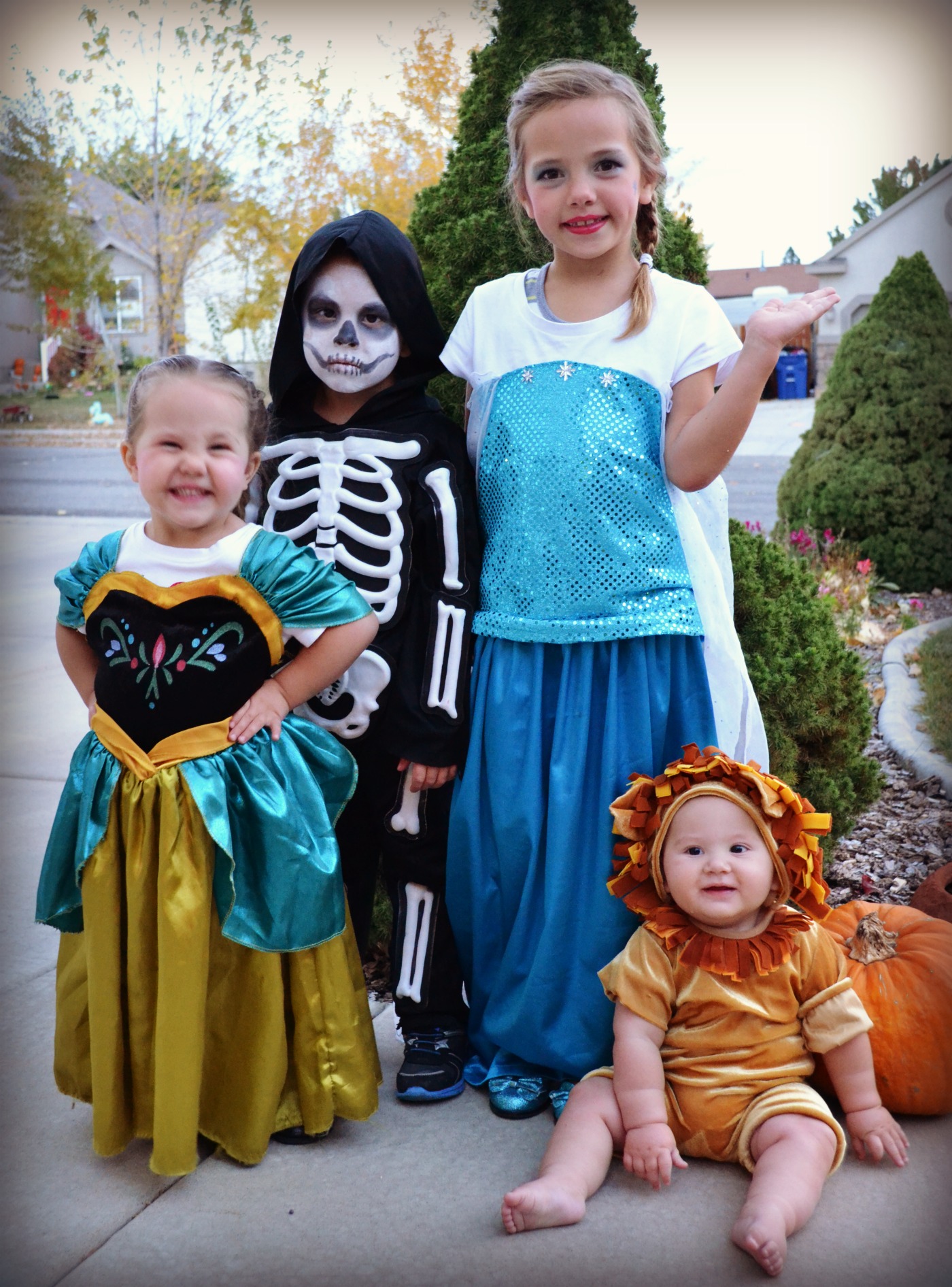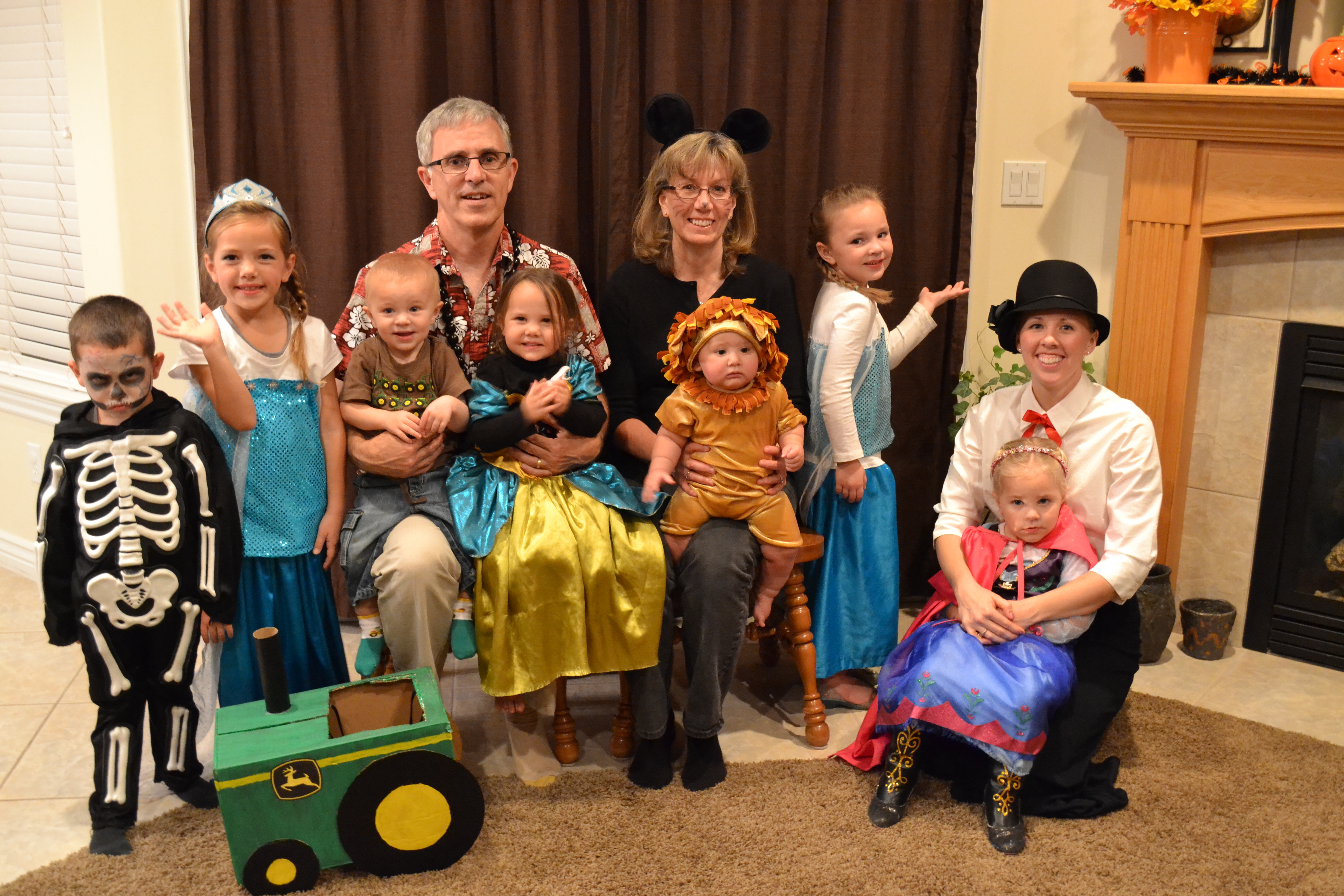 Halloween is always a TREAT and such an exciting time of the year! Lots of dressing up in costumes and attending Halloween parties! Vanessa was Elsa, Sariah was Anna, Owen was a Power Ranger, Captain America, and a skeleton, and Chad was an adorable lion. We kicked off the festivities by doing our annual Sorensen Family Halloween Evening (FHE). We got together with all the clan and had some spooking Mummy pizza, candy corn fruit trifles, Halloween jello and homemade root beer. It was a fun night of dressing up and playing with the cousins.
