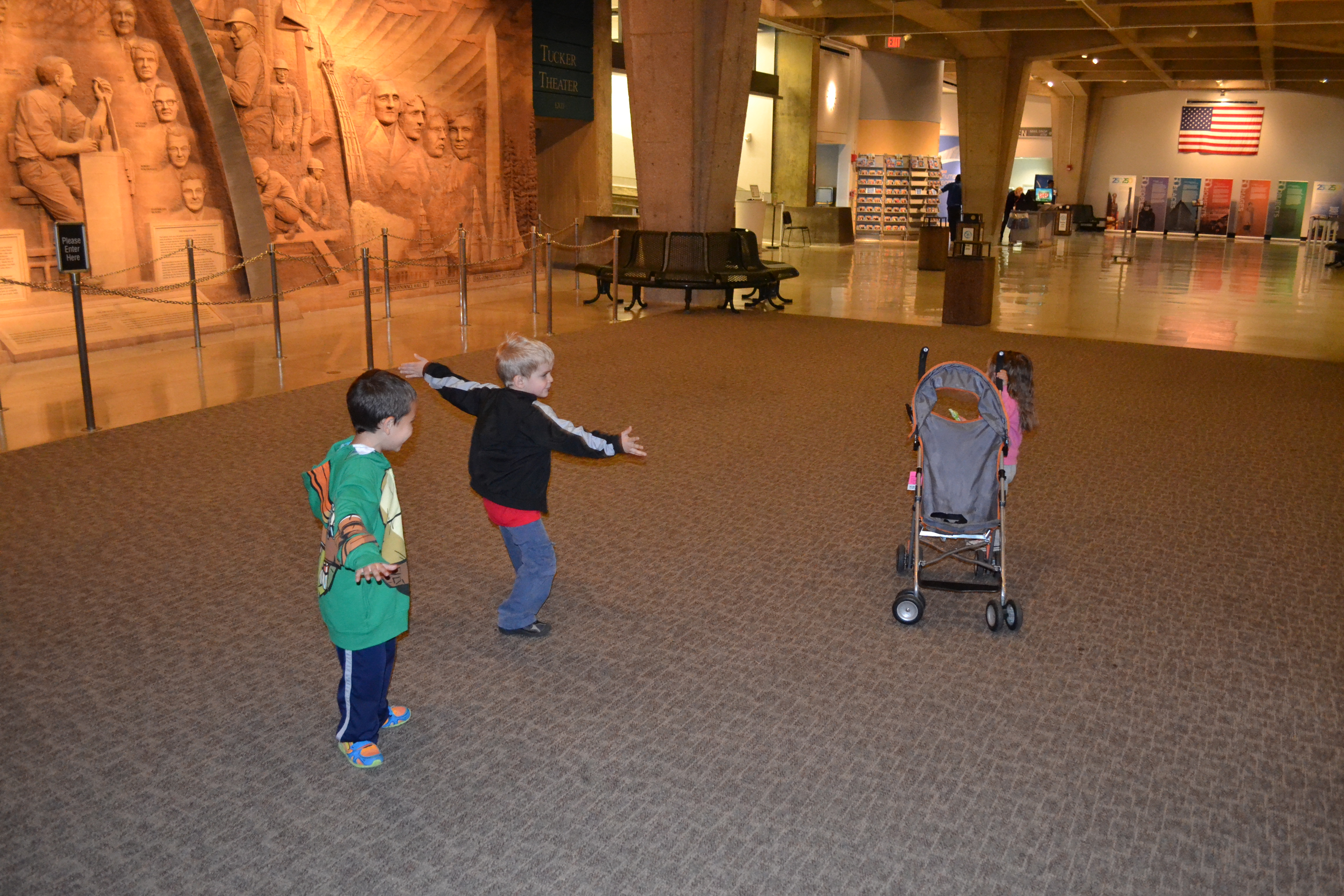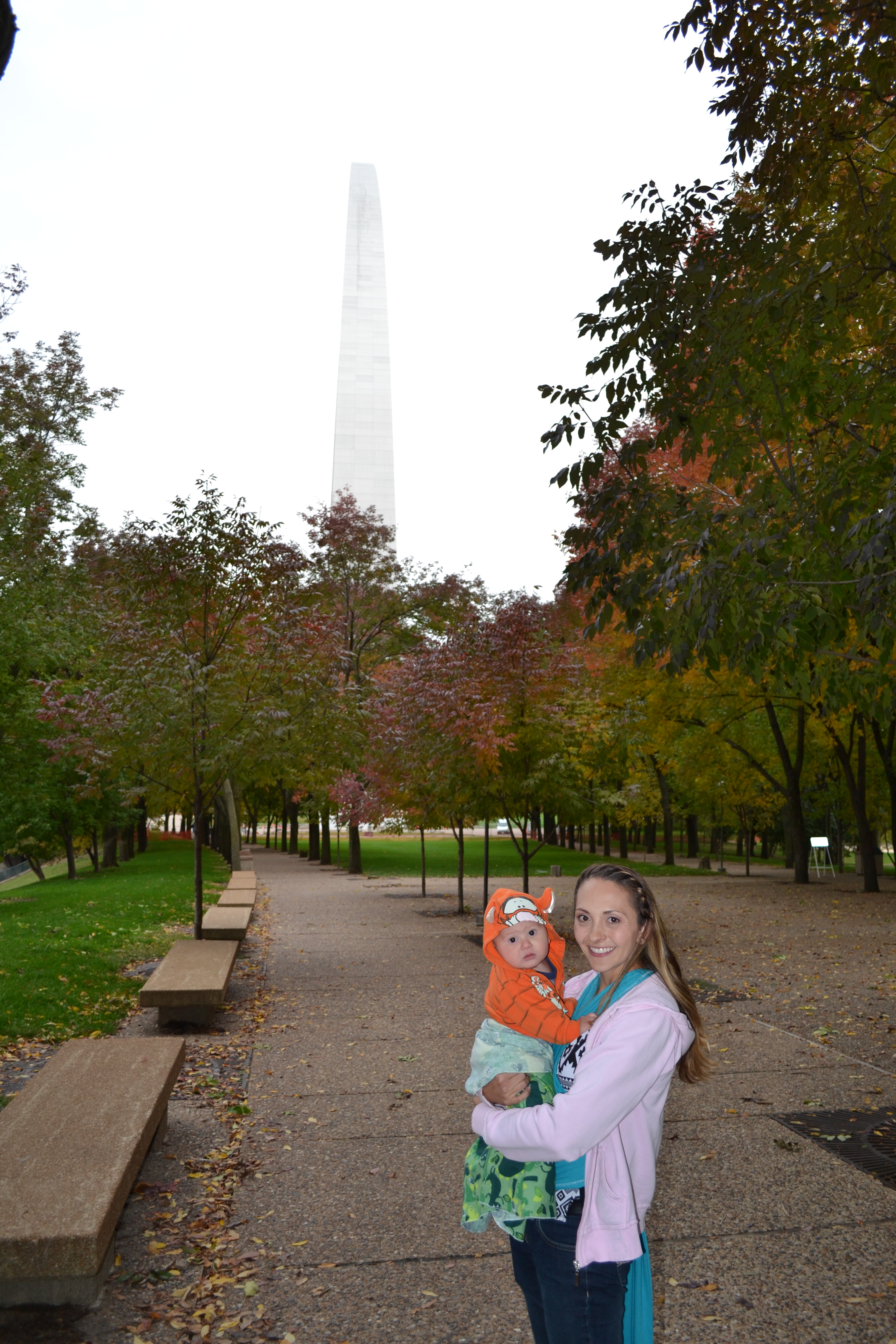 After getting things all loaded, we headed to go see the St. Louis Gateway Arch. On our way to the arch, we almost got hit by a semi-truck. It was a good thing that we said our prayers and asked for safety! We were truly blessed! After a scary drive, we finally made it to the arch. It was a bit chilly outside but we enjoyed our walk to the arch. It was huge! It stands over 650 ft high! We were able to go up to the top of the arch and look out over St. Louis and the Mississippi River. It was so cool to see the entire landscape! The kids thought riding up in the tram was pretty cool. They thought it looked like a time machine. They also had fun looking out and being high up in the sky. After going up to the top, we took a quick break to feed the babies and look around at the displays inside the arch before heading back to Amanda’s house. While taking a picture outside the arch, we ran into someone from Delta of all places! What a small, small world!