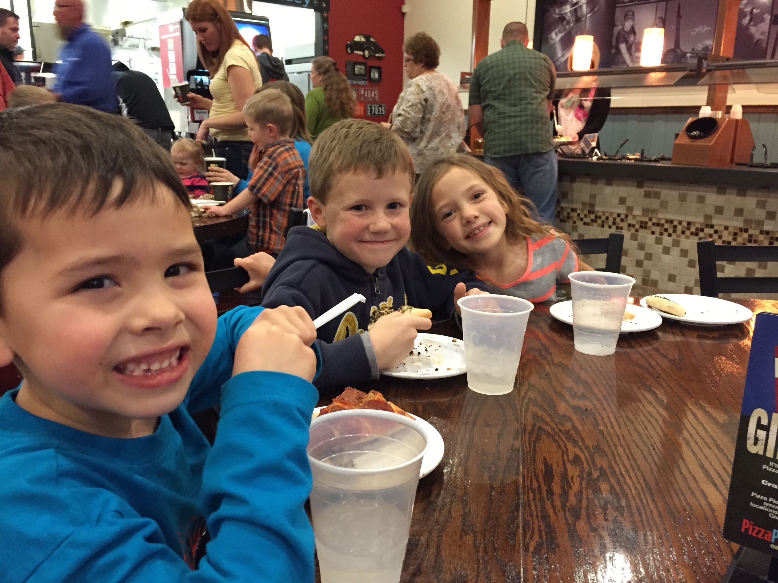 We took the kids and one of Vanessa’s friends, Skyler, to Pizza Pie Cafe to help support their schools’ fundraiser. We had a lot of fun stuffing our faces with various kids of pizza and dessert pizza! The kids alone are 8 or more slices of pizza! I guess they were super hungry and we can’t complain! We always love going out to fun places to eat and I’m glad that we could help her school out while we enjoyed a deliciously fun dinner with our cute family!